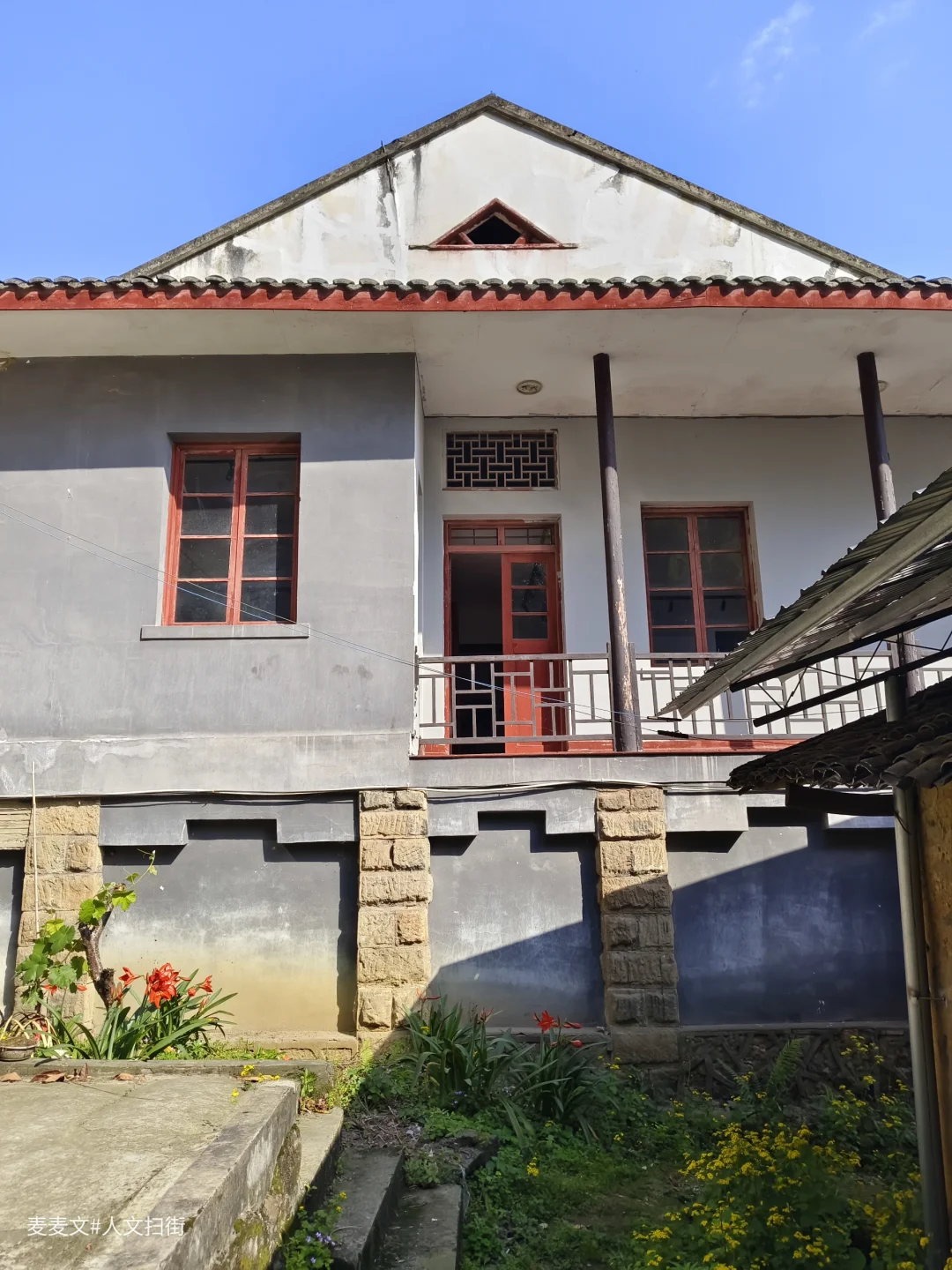 这栋简单普通的木结构建筑,坐南朝北,采用中式的歇山顶,小青瓦覆顶,夹壁墙,外漆深灰色。主楼地下以悬空的石柱支撑,这些柱子经历八十多年依然坚固,不仅可作为战时物资的储备库,还能在紧急时作为避难所。