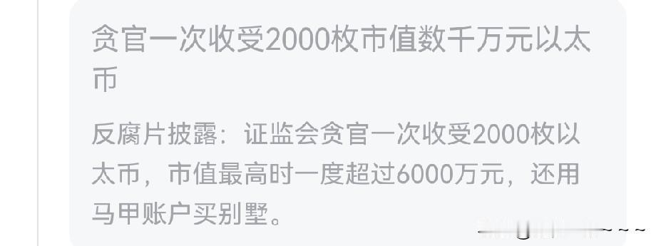 呵呵!另一个视角! 今天晚上光顾着看足球了,结果把反腐大片给忘了,回过头来浏览了,结果大吃一惊,就这两个标题就把我吓了一跳,一个是贪官一次收受2000枚市值数千万元以太币,另一个是“油老虎”李勇曾想过烧掉收受的现金。 可以说这两个人所涉嫌的贪腐还是挺典型的,也确实让我大吃一惊。 其实,大家知道吗?我们要看到贪官背后纪检监察机关办人员的辛苦,如果你留心看反腐大片的话,可以看到每一个人的案卷,在电视上看到的都是那么厚厚的一大桌,一大摞,毕竟这些人涉嫌严重违纪违法也不是一天两天了,涉及了那么多人,那么多事,要给他理顺出来,把证据固定好,那得费多大精力啊?说具体一点,光打字得打多少?[捂脸]
