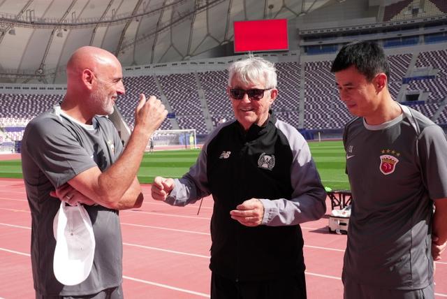 神奇主帅米卢探班正在多哈集训的上海海港队。