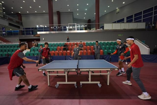 海港队通过乒乓交流赛让队员得到调节放松。