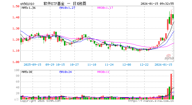软件ETF基金(561010)业绩比较基准为中证全指软件开发指数收益率,管理人为华安基金管理有限公司,基金经理为苏卿云,成立(2023-11-21)以来回报为39.25%,近一个月回报为24.93%。