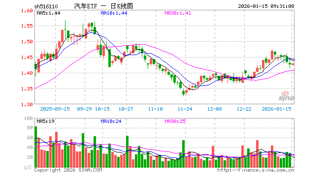 1月15日,汽车ETF(516110)开盘跌0.07%,报1.425元。汽车ETF(516110)重仓股方面,赛力斯开盘跌0.33%,比亚迪跌0.02%,福耀玻璃跌0.07%,上汽集团跌0.40%,拓普集团跌0.54%,长安汽车涨0.00%,德赛西威涨1.38%,赛轮轮胎涨0.19%,宇通客车跌0.32%,双环传动跌0.16%。