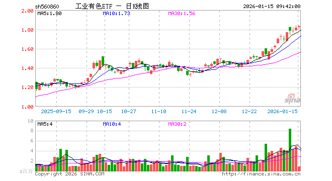 1月15日,工业有色ETF(560860)开盘涨0.33%,报1.820元。工业有色ETF(560860)重仓股方面,北方稀土开盘跌0.02%,洛阳钼业涨0.00%,中国铝业跌1.10%,华友钴业涨2.50%,云铝股份涨0.31%,铜陵有色跌0.16%,兴业银锡涨0.02%,中国稀土跌0.04%,江西铜业跌1.19%,西部矿业跌0.20%。