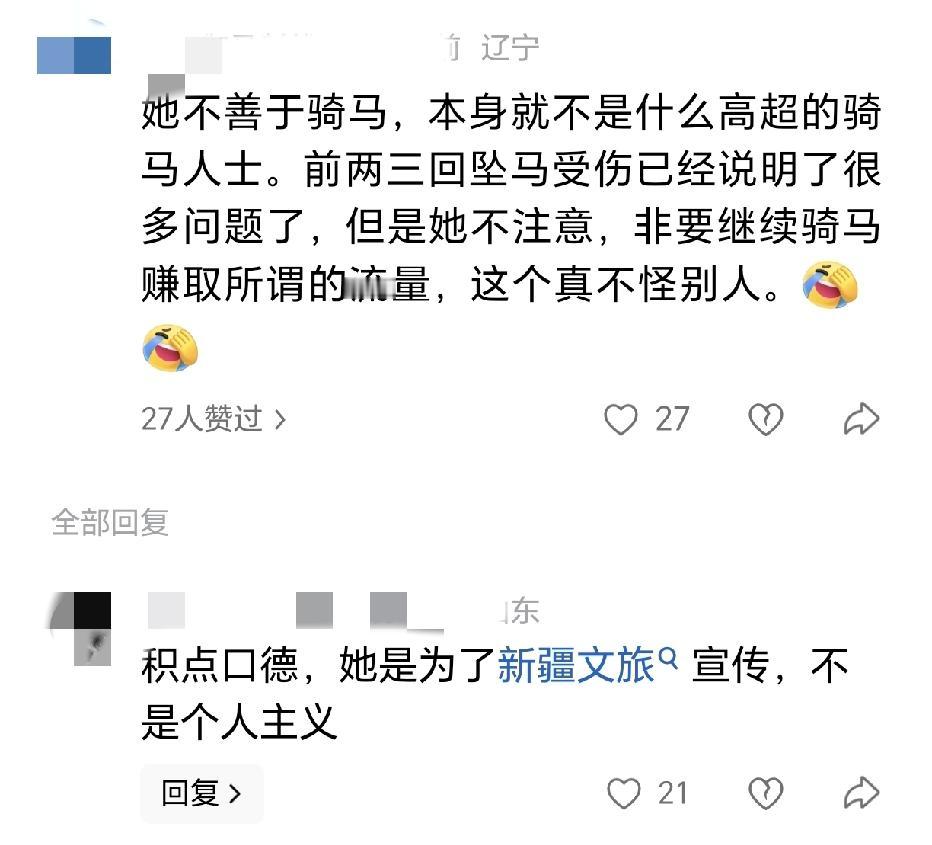 天妒英才!贺娇龙同志离世还未12小时,恶心的一幕还是出现了。 贺娇龙在团队拍摄视频时不幸坠马,经过几天的抢救,还是遗憾离世,几乎是全网悲痛。对于她的离世,不仅对新疆是损失,对全国也是损失,国家少了一名好干部,好党员。 她的离世是个意外,有聊天记录爆料她第一次摔下来时,被马拖行了一段距离,起来以后又继续拍摄。第二次摔下时,人已经昏迷,已是脑颅出血的状态,只是她不自知。 在一个家长群里的得知,她的墓地现在的父亲的旁边,就在昭苏公墓,怕父亲太孤单,去陪父亲了。 这么好的干部,把一生奉献给了新疆,她的离世,让人惋惜,可不和谐的声音还是出现了。 有人认为她是在博流量,风头出尽,能够从马背上坠下,实属活该,都是自找的。 也有人说,她是一个骗子,骗人去新疆旅游,丧尽天良。 还有的说她,名字起大了压不住命格,出事是早晚的事情。 如果贺娇龙是个骗子,那世界上就真的没有好人了。 她骑上马拍视频赚取流量不假,但她都是为了新疆的老百姓,把农特产推出去,推向全国,直播打赏赚的钱都到了公益账户。 请问,作为党员谁能一下子交100万党费,她应该是独一份吧。她把自己家的房产卖了,又借了20万一定要凑齐100万交党费,可见她对党的热爱与忠诚。 为人民服务不是一句简单的口号,而是时刻把老百姓装在心里,为老百姓谋发展谋出入走向致富的道路。 对于贺娇龙的离世你可以不悲伤,不诋毁是对逝者的尊重,有些人请闭上你的嘴,积德口德吧!