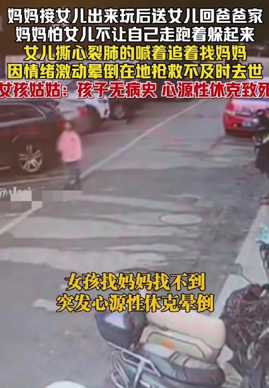 湖南一离异家庭,9岁的女儿跟随爸爸。孩子见不到妈妈,很是想念。当妈妈来看她,带她出去玩,是她最快乐的时光。妈妈离开时,是她最伤心的时候。 1月11日,妈妈来看女儿,女孩欢快的扑到妈妈的身上。妈妈见到女儿也很兴奋,拉着孩子的手说:走,今天出去玩个痛快。 快乐的时光,总是那么短暂。俩人在一起还没玩到尽兴,就到了送孩子到爸爸家的时候。每次离别,妈妈总是依依不舍。孩子更像是生离死别,拉着妈妈不让走。 快到爸爸的家时,妈妈怕孩子不让自己走,迅速跑开,躲到汽车后面。孩子感觉到自己像是被抛弃了,很恐慌。撕心裂肺的喊:妈妈你别走!来来回回四处寻找。孩子没找到妈妈,心一急,眼一黑,倒在了地上。孩子最终因心源性休克,抢救不及时而死亡。 离异家庭最容易受伤的是孩子。做父母的既然选择了要孩子,就要考虑到不伤害孩子。父母闹离婚,孩子不适应。应该告诉孩子,这是大人的事,不会影响对孩子的爱。别让孩子产生恐慌,使孩子有安全感,平稳的度过适应期。 母亲躲藏致女儿心源性休克身亡离异家庭怎样处理好离异子女关系