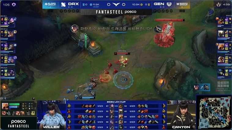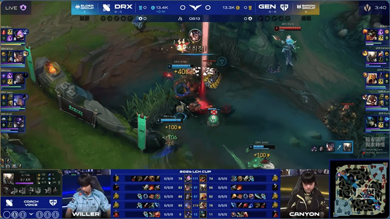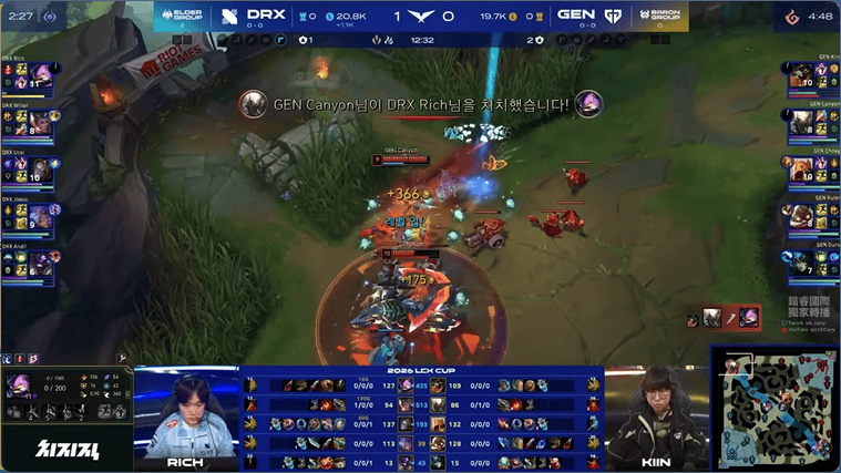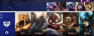 GEN选用:Kiin鳄鱼、Canyon潘森、Chovy沙皇、Ruler飞机、Duro娜美