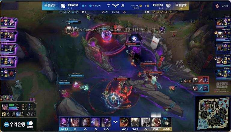 21分钟,两边野区混战,GEN被打出团灭