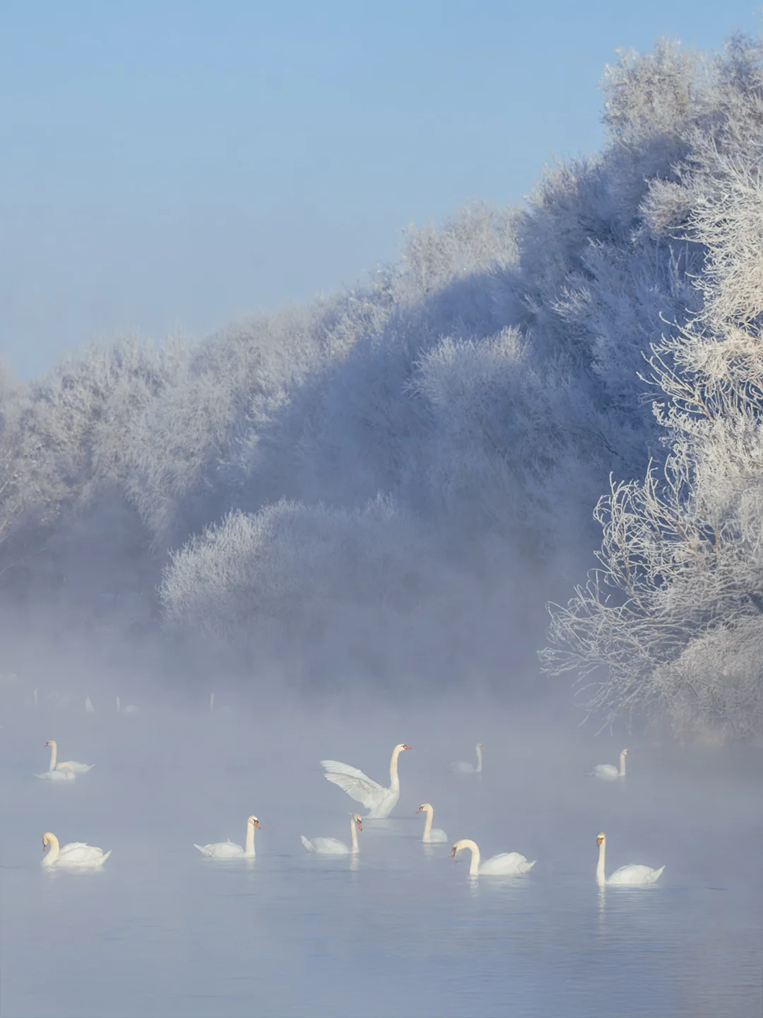 真正的冬日限定仙境!!! 天鹅、雾凇和晨雾交织,如梦似幻。 冬天新疆行 我认为这是唯一必选的目的地 这一趟来新疆, 就为了这零下几十度的浪漫 每年冬天 来自西伯利亚的天鹅会如约而至 这里是全国z大疣鼻天鹅越冬地 晨光中天鹅与雾凇同框 湖面氤氲的水汽环绕,如童话仙境一般 有风吹过 浓雾散开的瞬间 恰好看到两只天鹅碰头在一起 激动的定格下了这个画面 / 📍地址:伊宁英塔木乡天鹅泉湿地公园 🚙交通:抵达伊宁市后,包车或自驾导航直达,一小时车程