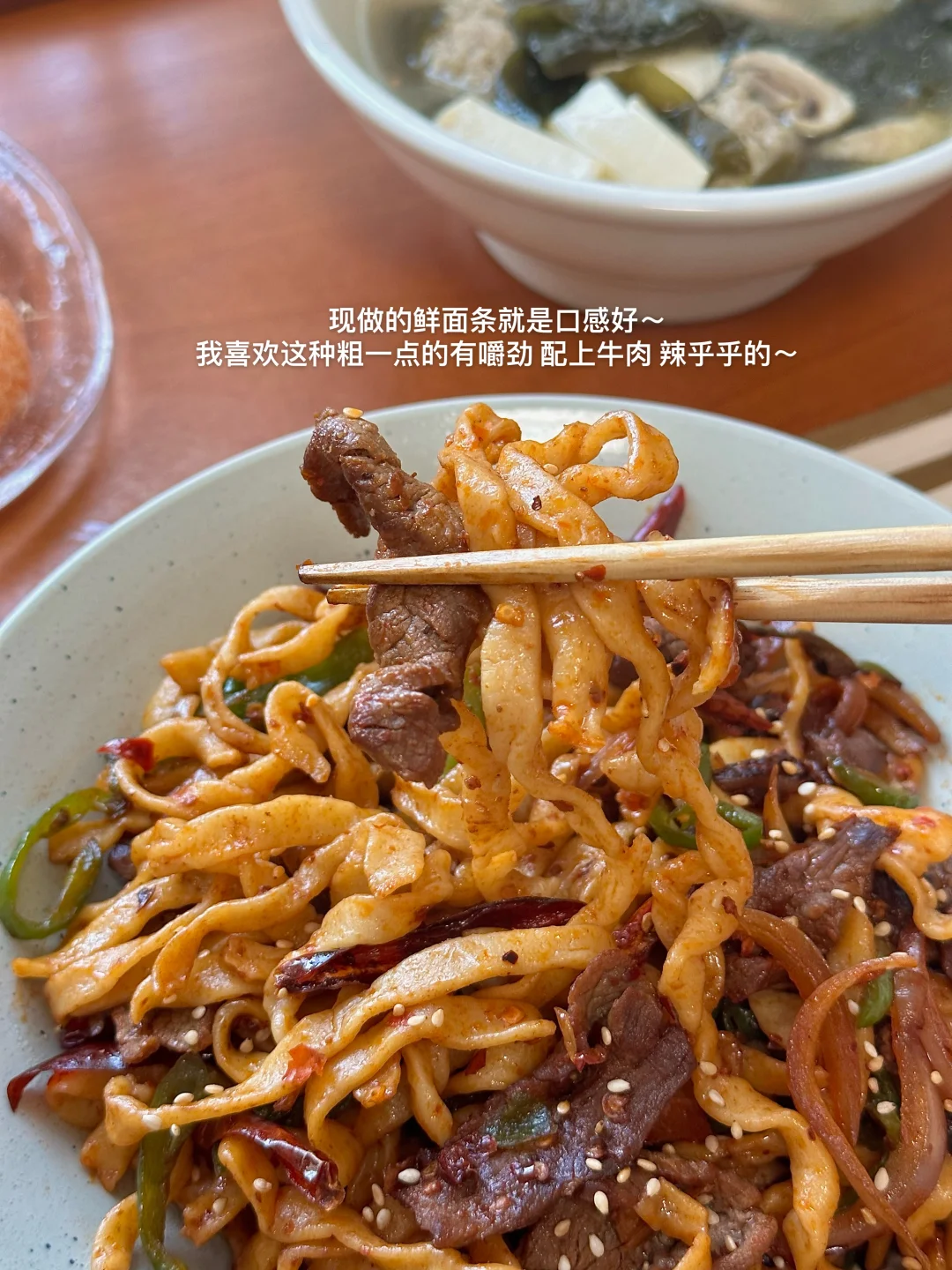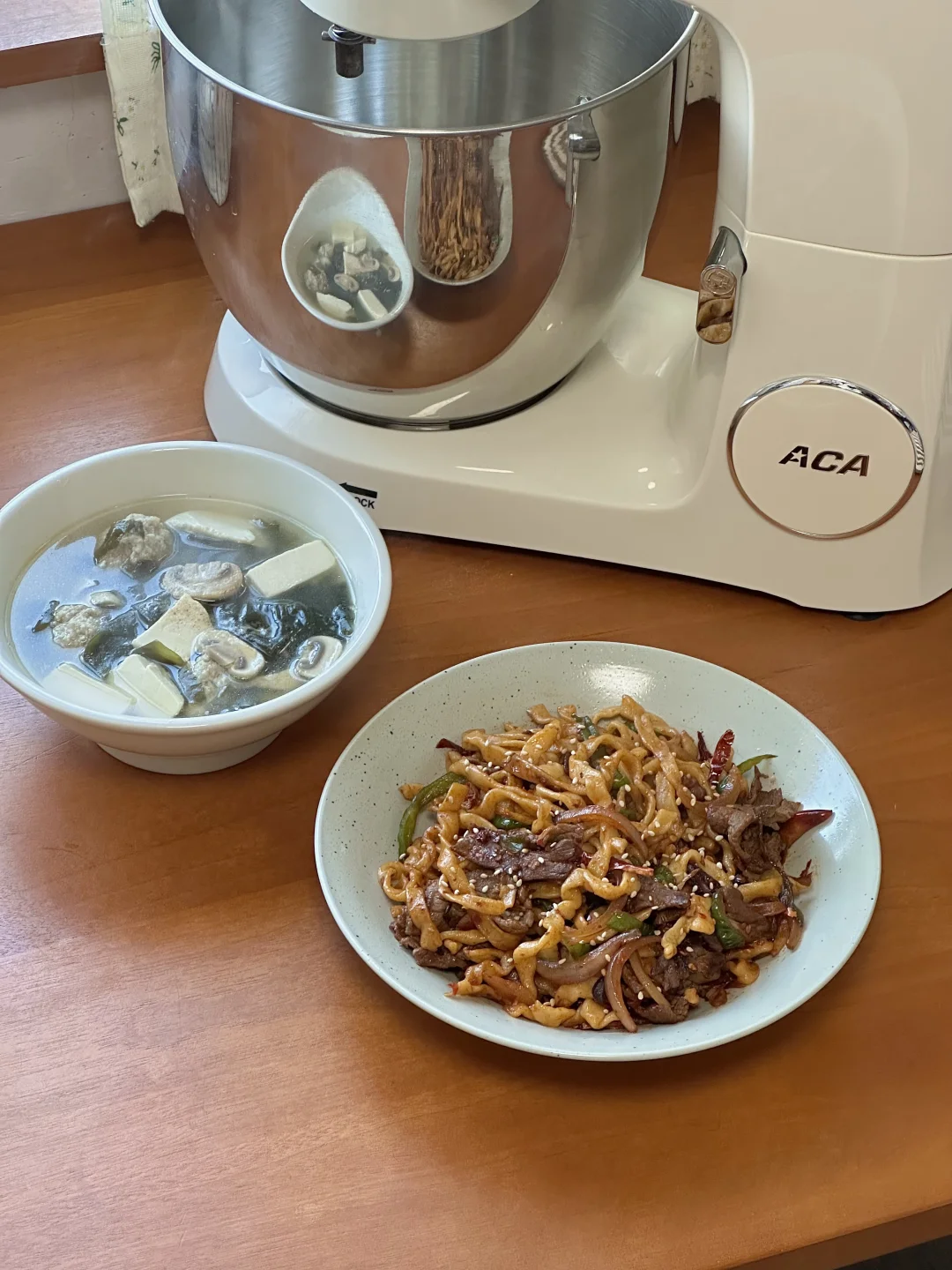 🥄今日菜单: 香辣干煸牛肉面 裙带菜口蘑豆腐肉圆汤 砂糖橘 . 详细做法步骤图往后翻~ . 今天的香辣炒面配一碗鲜美的热汤 吃完简直幸福感爆棚~ . 第一次用厨师机自己做面条 一整个大成功! 多亏了我们ACA北美电器膜法师厨师机ASM-A3 智能触控彩屏 一键和面 自由调档调时间 新鲜现做的面条轻松就能搞定🍜 煮出来口感超级劲道 好吃爱吃! 而且粗面细面随心选~满足不同喜好 还有多种配件 平常绞个肉馅 做做面包馒头啥的都很方便~ .