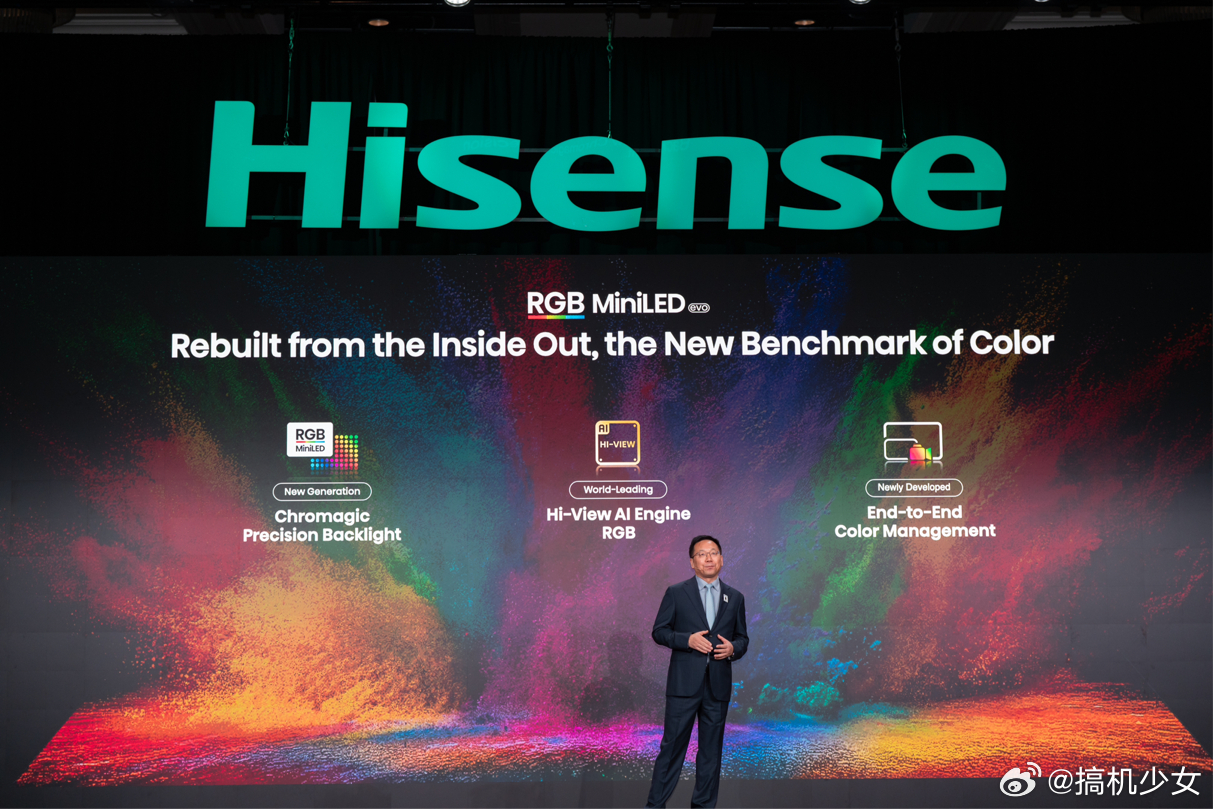 前段时间海信CES发布了全新一代RGB-Mini LED,带来了三大进化,第一大进化是光源:全新的玲珑4芯真彩背光;第二大进化是光色同控芯片:信芯AI画质芯片H7;第三大进化是色彩管理:RGB套全链路色彩系统,包括运用专业级3D LUT技术、提供光影妙控台等功能,以端到端的色彩管理与校准。据说画质好到“会呼吸”,期待2026年海信电视的新品呀