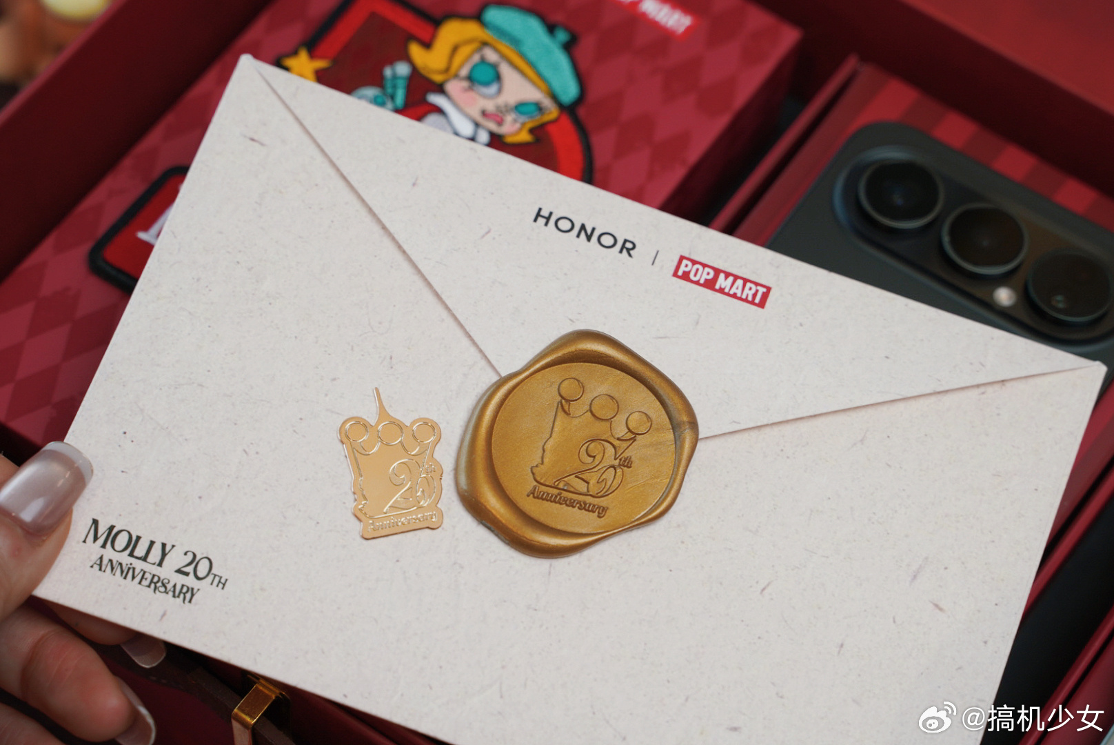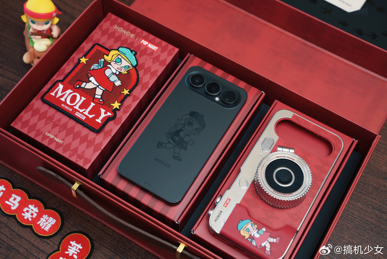 荣耀 500 Pro MOLLY 20 周年限定版联名礼盒太太太好看了!本Molly粉丝狂喜,除了机身后盖有Molly专属图案外,从卡针到手机壳,一整套深度定制,而且这个复古红也太适合新年了叭!