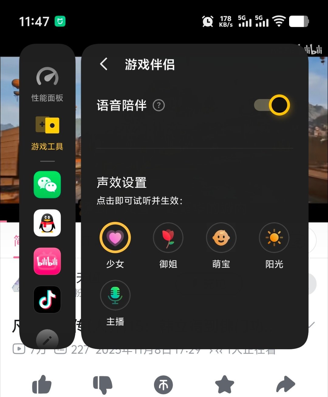 originOS的视频工具箱有个功能叫做“游戏伴侣”跟王者的灵宝差不多,时不时给点语音互动换新系统啥都新鲜嘛我打王者的时候就开了为了让抖音和b站能息屏听剧看看不用听音频功能会不会和澎湃OS一样异常发热结果它一直都没被触发过一晚上过去了刚才吃午饭亮屏看b站解锁它冷不丁来了句“游戏5小时啦,注意休息”之类给我san值吓掉了