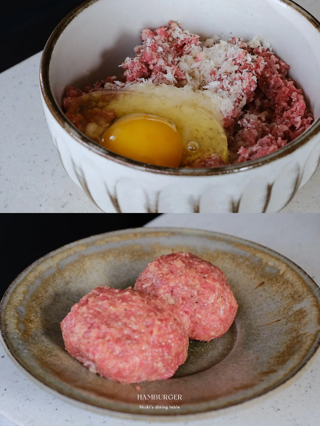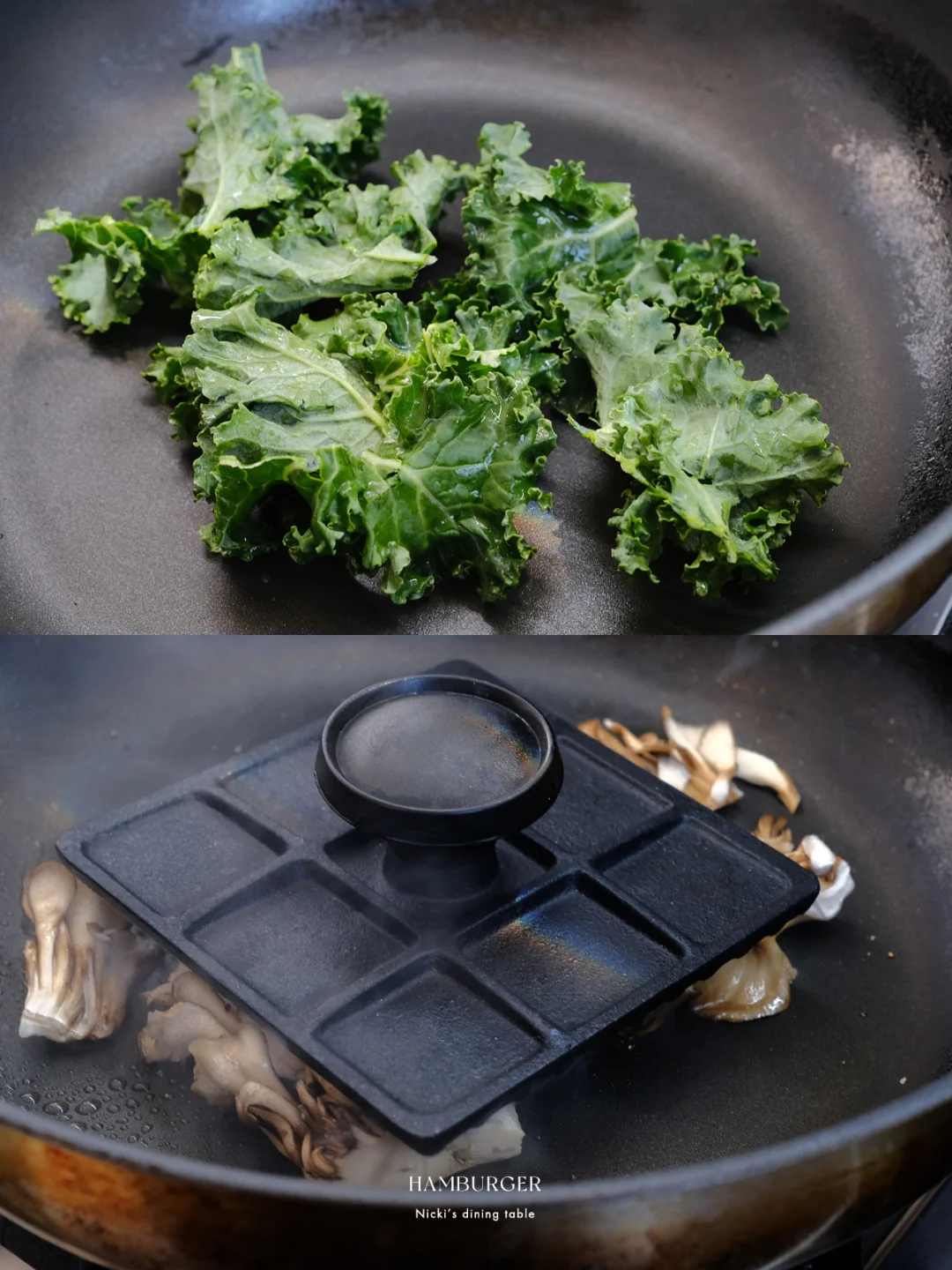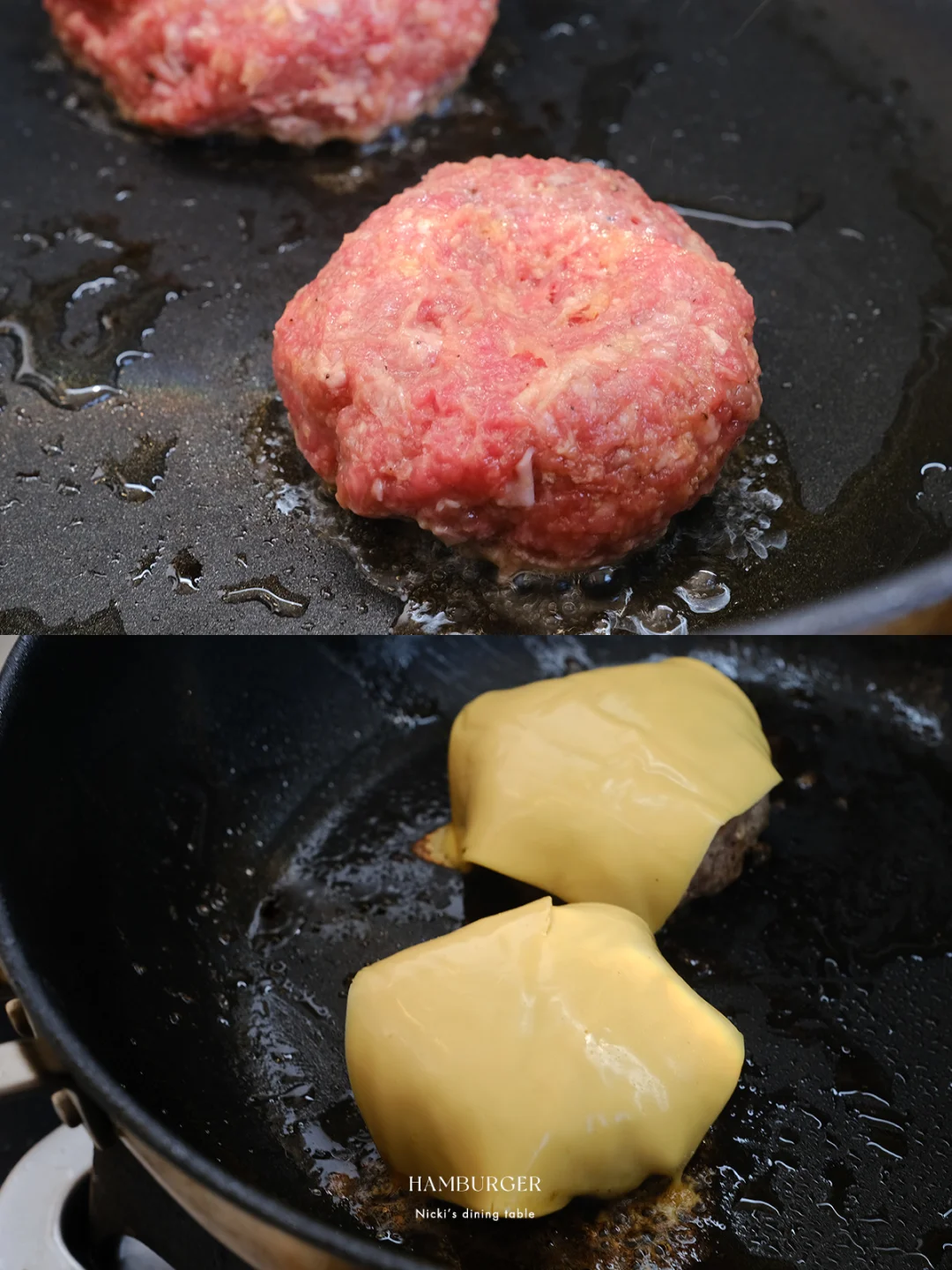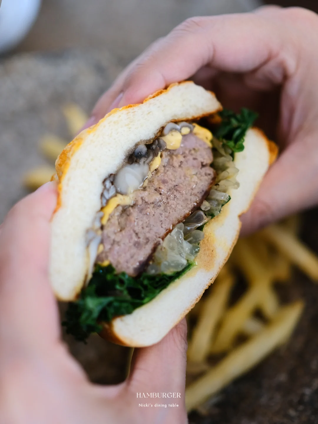 在汉堡节上看到了一款“柚见舞茸和牛堡”,太诱人!看了原版的制作视频,步骤还挺多,根据自己口味喜好稍稍做了一些减法。柚子+肉饼+舞茸,一口下去,汁水充盈。 🔅 做法: ·牛肉糜+猪肉糜(7:3)加面包糠、鸡蛋、胡椒盐,抓匀不断拍打上劲。 ·羽衣甘蓝无油下锅,撒上少许胡椒盐,炒香后盛出 ·锅中倒少许油,放入舞茸菇,用锅铲或者重物稍稍压一下,撒上少许胡椒盐盛出。 ·锅不用清洗,放入牛肉饼,煎至两面上色,淋少许水,盖上锅盖小火煎5-8分钟后,放上一片芝士,再盖盖焖2-3分钟。 ·另取一平底锅,锅中化开黄油,将汉堡面包煎上色 ·汉堡酱:味噌+蜂蜜+蛋黄酱 ·最后一步组装:面包抹上汉堡酱,依次铺上羽衣甘蓝、双色柚子、汉堡肉、舞茸菇即可。 - 汉堡的面包胚是逛山姆看到的新品:曼可顿三重芝士土豆汉堡面包。这款面包在三重芝士的加持下,比常见的汉堡胚口感更丰富,用黄油煎烤后,本身的芝士香以及乳香越发突出。面包体添加了马铃薯雪花全粉,吃起来不干巴且有弹性。
