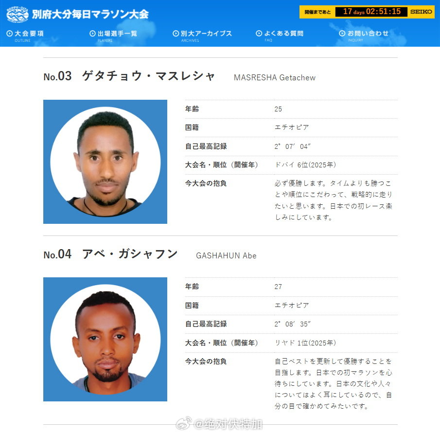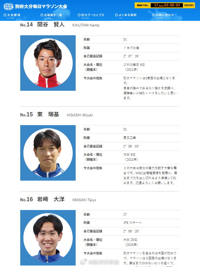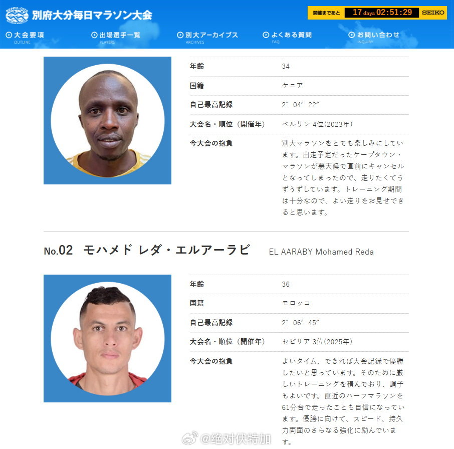 2026日本别府大分马拉松特邀精英名单。除了国际 Ronald Korir 等高