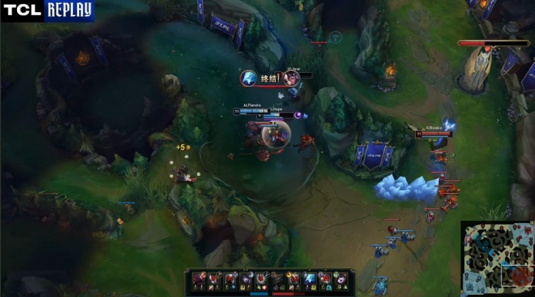 [4:10]Wei潘森来下gank,Kael锤石被iG三人集火送出一血,Jwei璐璐拿到人头。