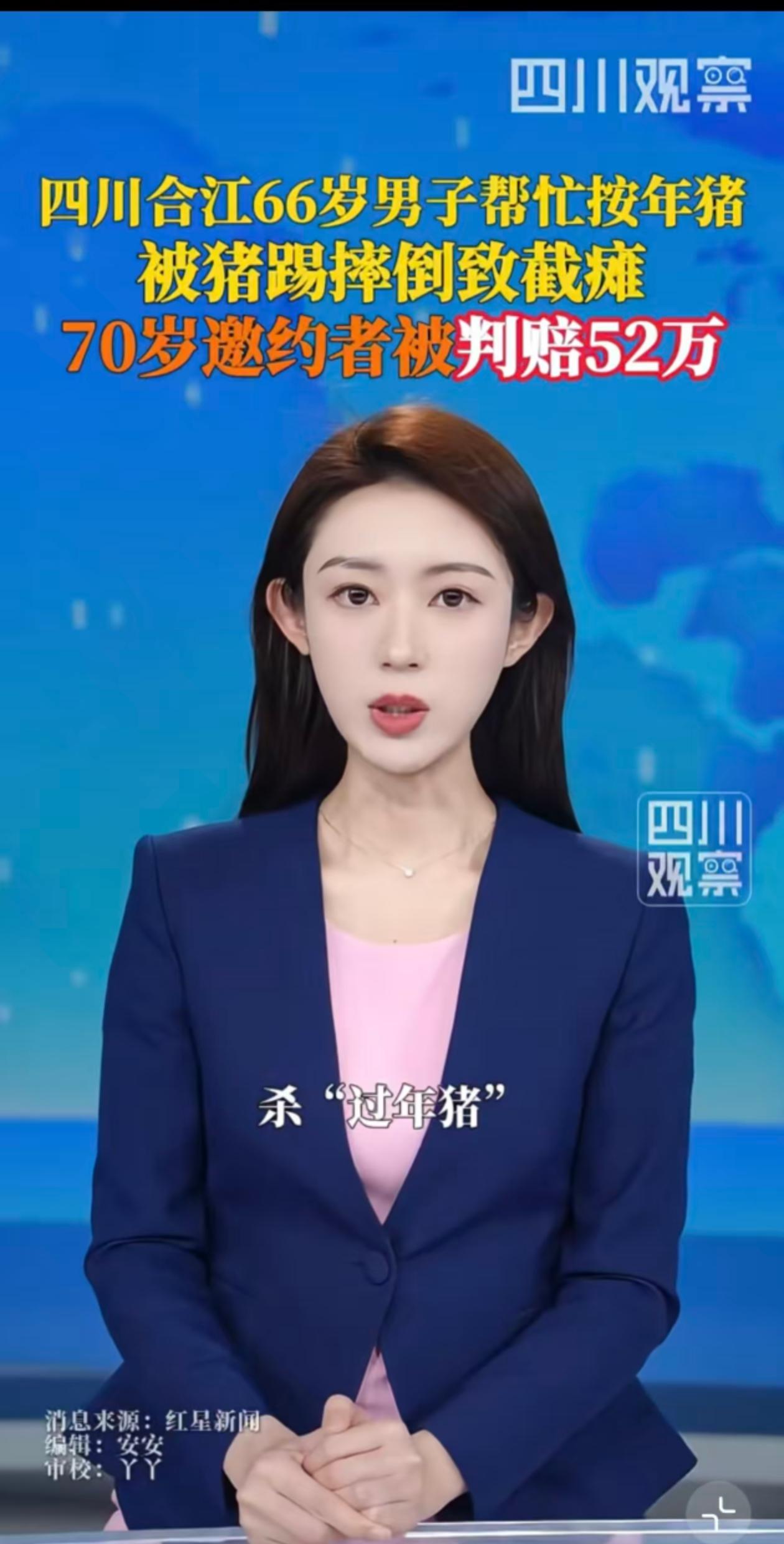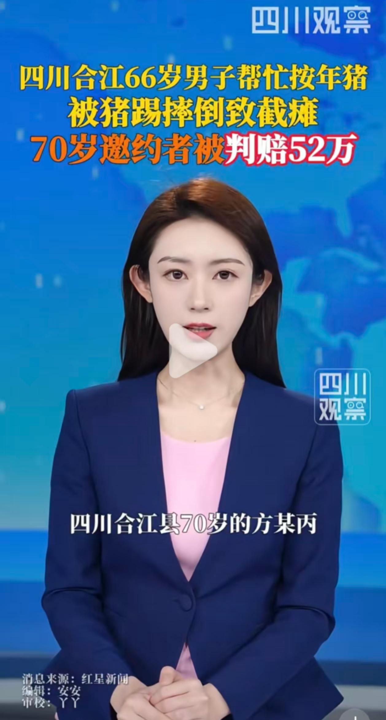 呆呆如果事先看到这个新闻,应该会被吓得冷汗直流! 66岁的方某甲,帮同村70岁的方某丙杀年猪,看名字两人应该是同宗兄弟,年猪挣扎期间把方某甲踢瘫痪。 法院判主家赔伤者52w,由于之前主家在医院给伤者垫付了八万的医疗费,算下来得赔44w。 网友说有判决书也没用,在农村70岁的老人怎么有那么多钱来赔,只能说双方都倒霉。 不过从这个案子上来看,按猪确实危险,特别是老年人骨头脆,一不小心就会受伤,不过现在农村里杀年猪的主力还是老年人。 所以呆呆让网友帮她按年猪,看看去她家帮忙的那几个小伙子,各个身强力壮,特别是保时捷大哥,眼里只剩下对二师兄的热情,二师兄在几个年轻人手下毫无动弹的机会!