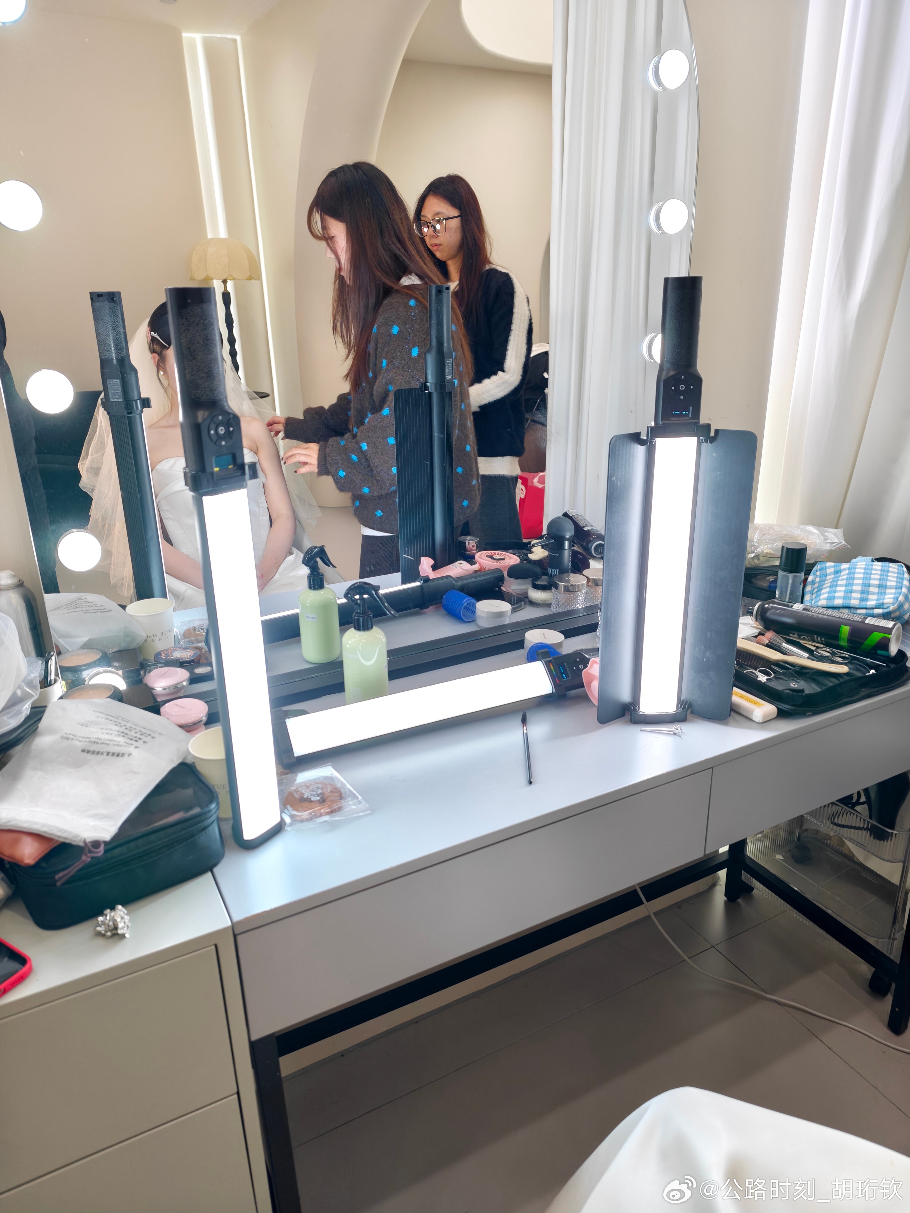 到了备婚里最费时间的环节之一——试妆。现在做造型都这么卷,灯棒种类和数量比当今绝