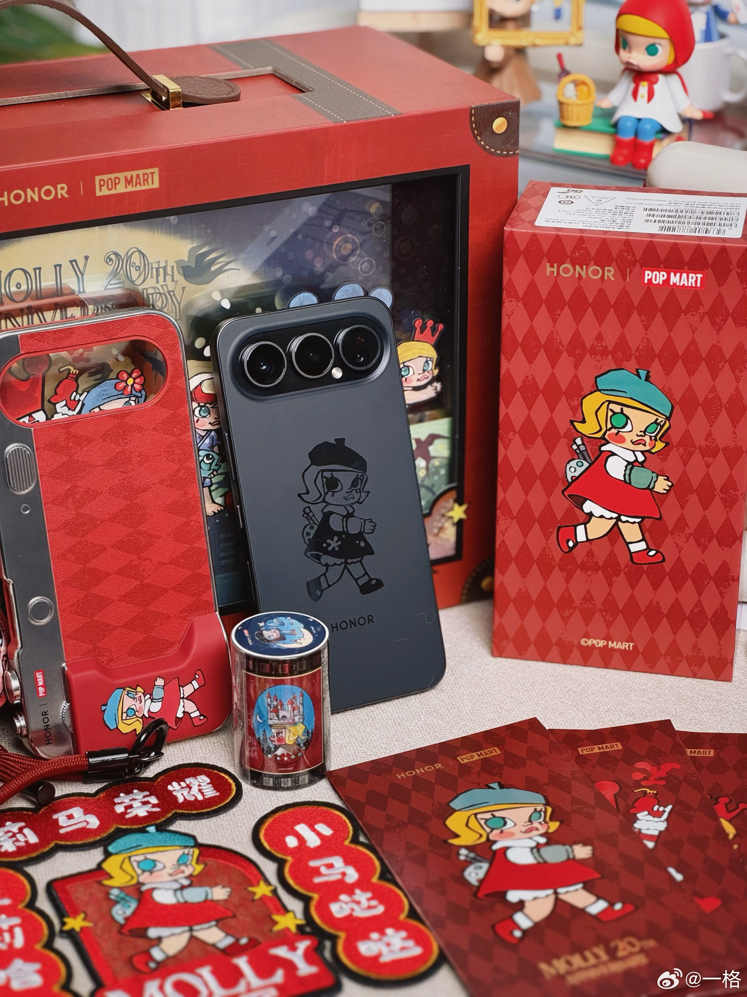荣耀和泡泡玛特联名的MOLLY 20周年限定版!这次不仅外观上有MOLLY,内置的MOLLY主题锁屏壁纸也可以自定义,还有相机专属水印,太可爱了我的MOLLY😘