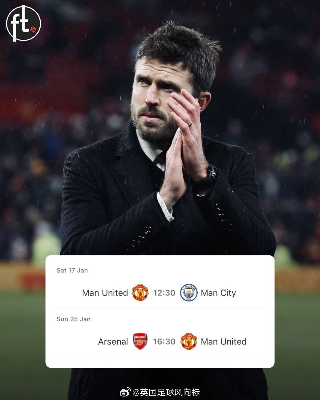 卡里克上一次执教曼联的比赛,主场3比2击败阿森纳。卡里克重返曼联执教,接下来两场比赛,主场对阵曼城,客场对阵阿森纳,都是硬仗,大家不妨预测一下这两场比赛的走向和结果。卡里克出任曼联主帅