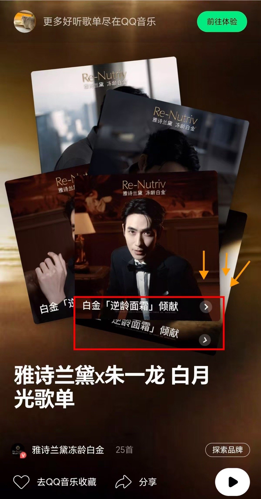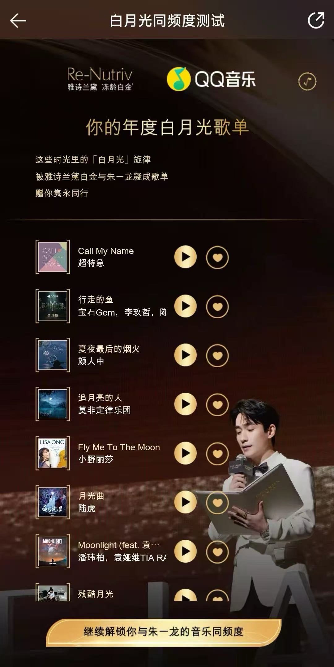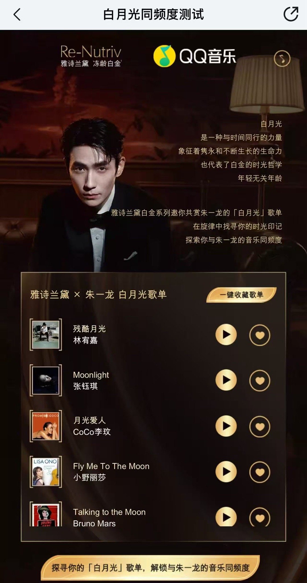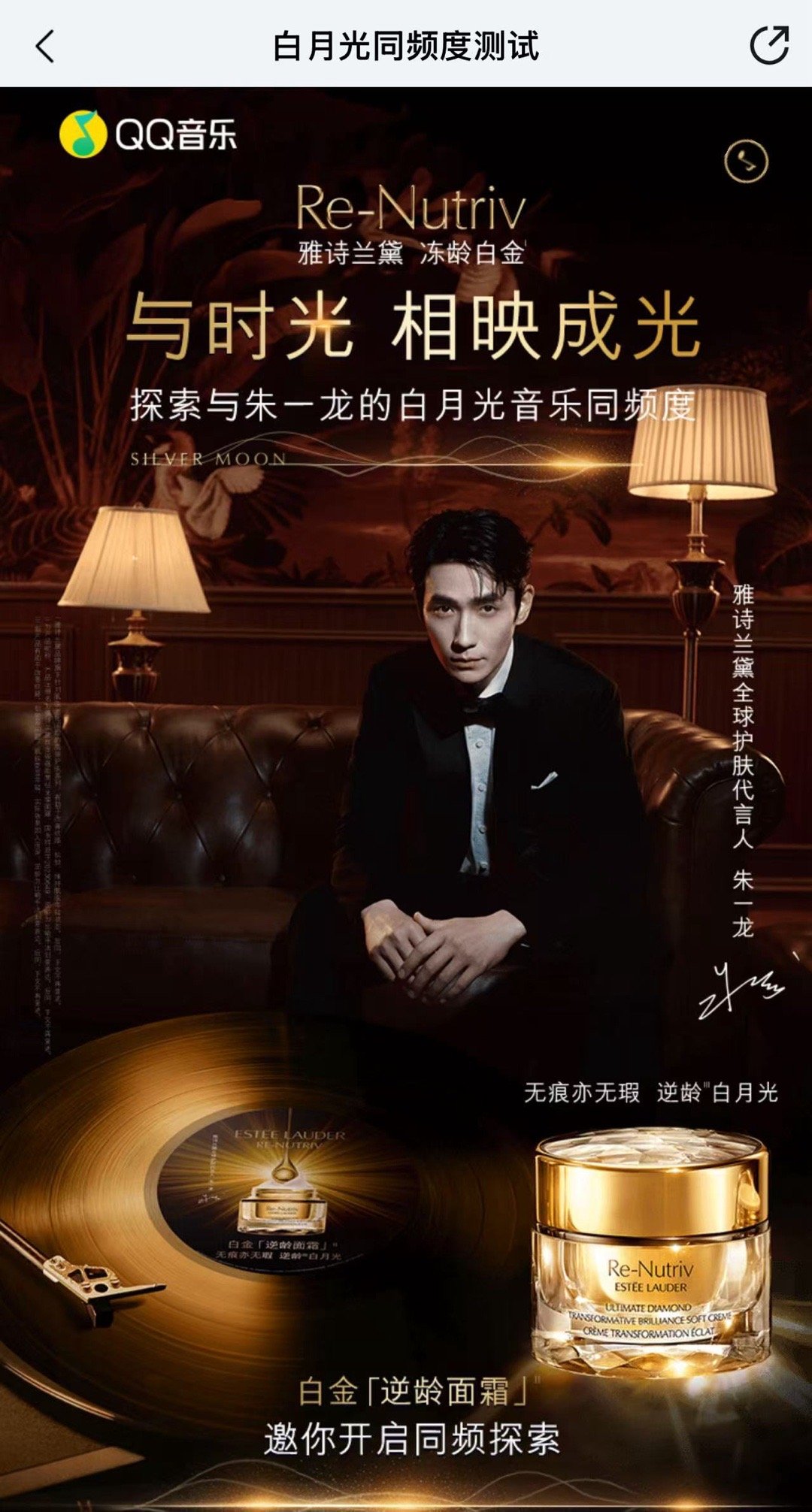 这次雅诗兰黛真的太宠粉了!除了能听到朱一龙亲自挑选的“白月光”旋律,还能体验到这份心意满满的互动。🔍朱一龙 白月光 月光 时间,就能解锁专属歌单,把这份音乐与美肤仪式完美融合的体验带回家!那些拥有“白月光典藏黑胶”的幸运儿们,手机碰一碰有惊喜哦!朱一龙的白月光歌单和朱一龙的听歌匹配度与时光相映成光