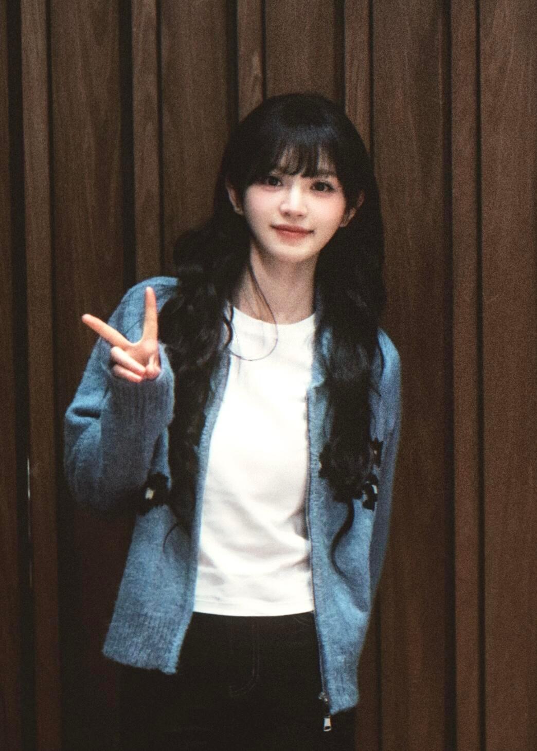 一个拍照喜欢比耶的学姐