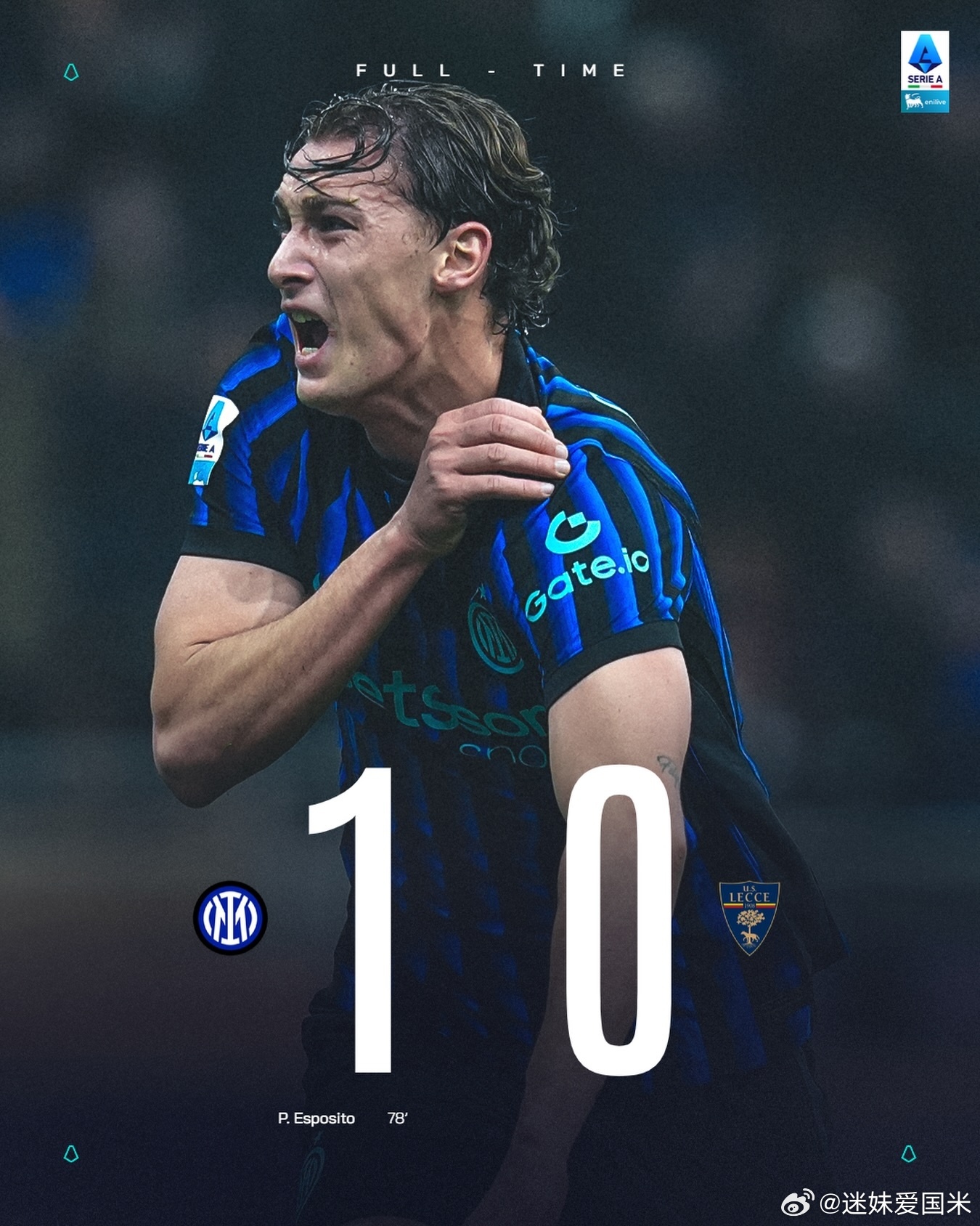 大皮奥拒翻车!意甲第16轮补赛,凭借替补皮奥埃斯波西托的致命一击,国际米兰主场1