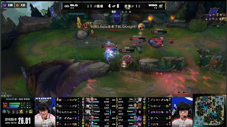[27:31]龙魂团x2,阿Bin见面直接睡着,WBG拿到土龙魂,BLG推掉WBG中路二塔,WBG经济领先3k。