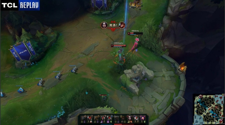 [8:42]WBG三人去上强行越塔击杀阿Bin亚恒,WBG经济领先1.6k。