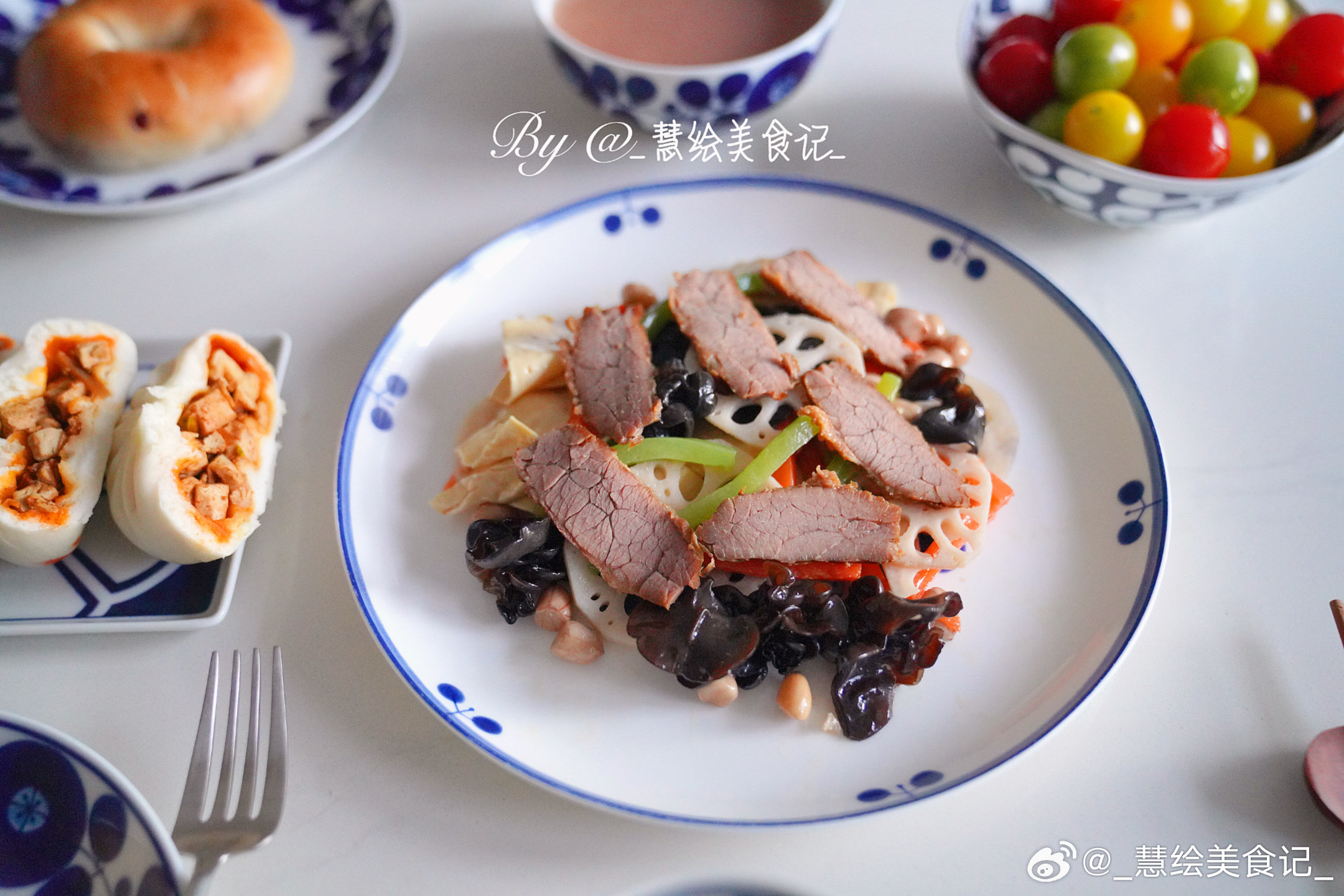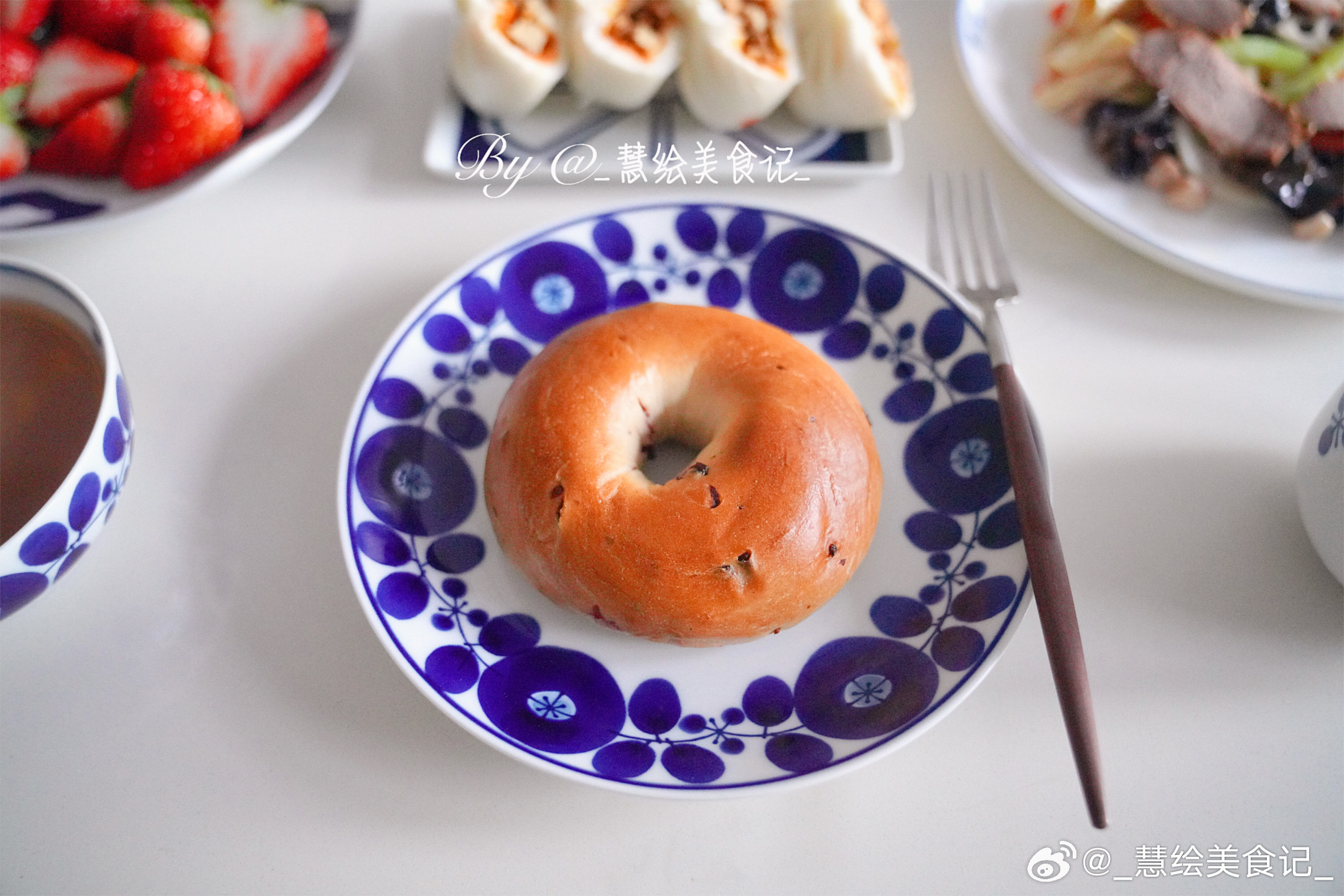 周二早午餐~牛肉蔬菜沙拉、豆腐包子、杂粮粥、蔓越莓贝果、燕麦奶、小番茄、草莓🍓好好吃饭的一年晒出我的年度兴趣