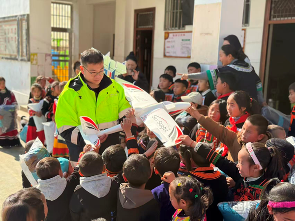 《中国民航报》、中国民航网记者李佳为报道:1月13日,东航四川分公司的青年志愿者们再次踏上熟悉的路途,奔赴凉山彝族自治州雷波县开展“为爱飞行一小时”主题公益行动,通过航模表演、民航知识课堂、互动游戏等环节,让翱翔蓝天的梦想在彝乡生根发芽。