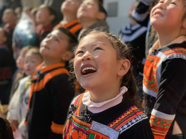 不远处的海湾乡中心小学则坐落于雷波县的乐水湖畔,全校2000余名师生中,彝族学生超过三分之二。东航的志愿者们精心准备了一场航模飞行表演大戏,当航模飞机在操场上空划出优美弧线,孩子们仰起的小脸上写满了兴奋与憧憬,欢呼声在山峦间与湖畔边久久回荡。这一刻,一颗翱翔蓝天梦的种子,正悄然在孩子们的心底悄然生根,静待发芽。