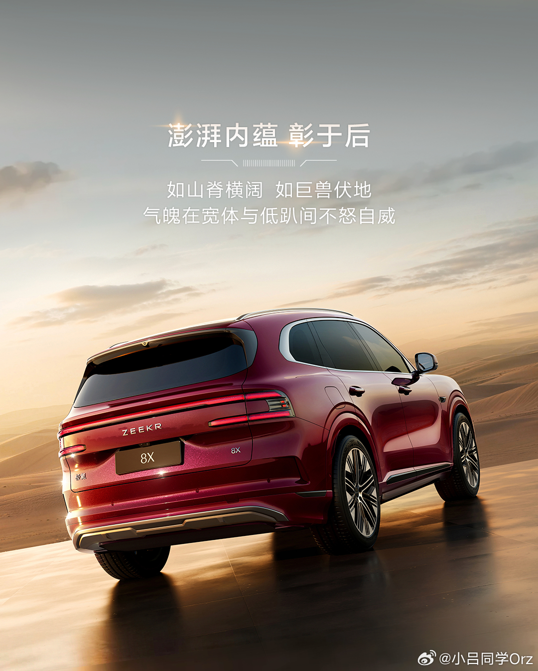 极氪8X以「Powerful Elegance」的豪华设计理念,将澎湃性能外化为磅礴之势,从此阅历天地,自在随心。超级电混高性能旗舰SUV结合昨天的公告图,大家觉得怎么样呢
