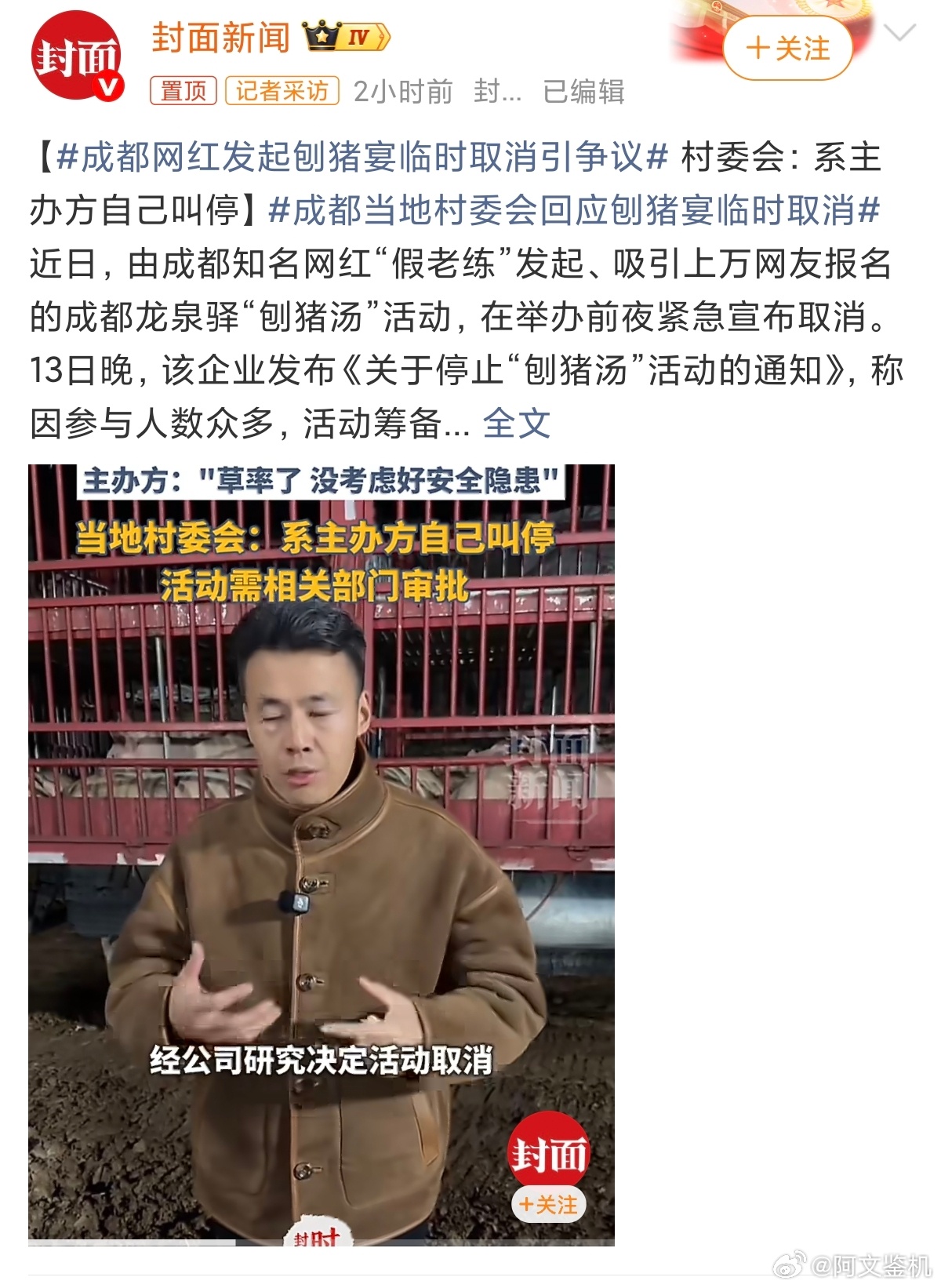 成都网红发起刨猪宴临时取消引争议机会和剧本的区别,就像丁真只有一个,你不能重新造