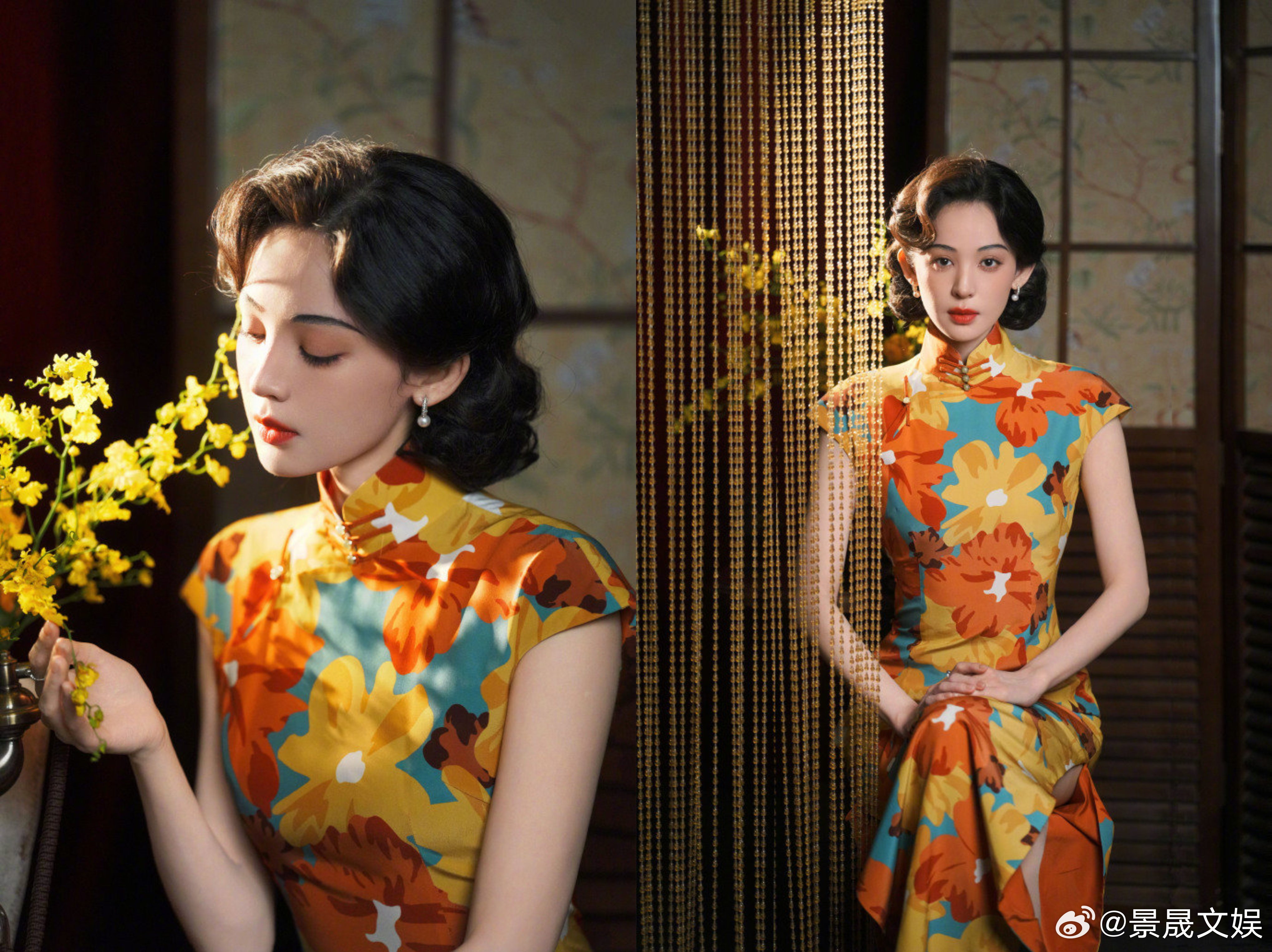娜扎 民国画挂历女郎 一步一摇皆是民国韵味,娜扎旗袍造型直接封神!胶片大片尽显温