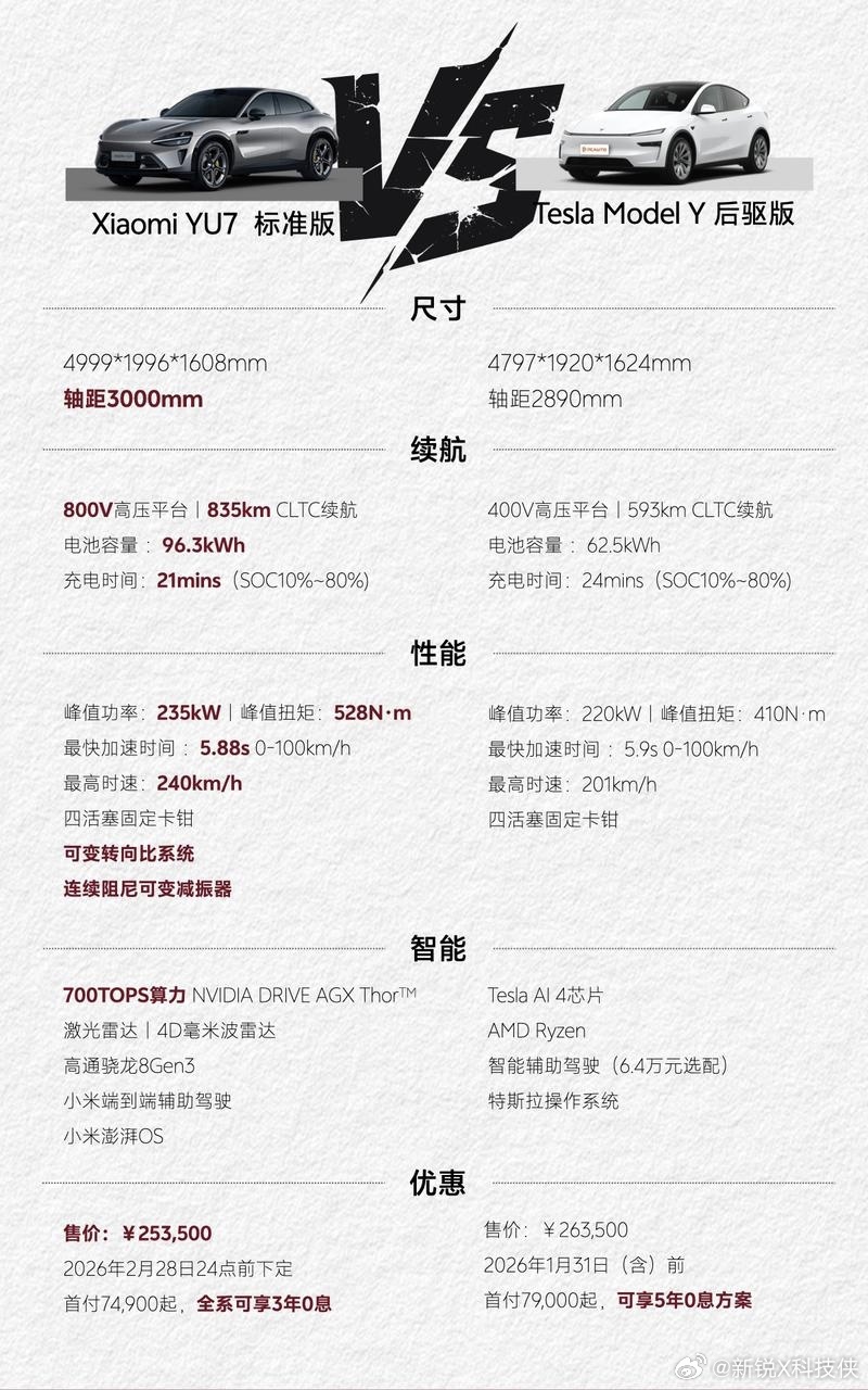 小米YU7这波购车政策真的中肯,直接和Model Y站到同一起跑线了。都知道之前小米没有0息政策,对比总感觉不对等,现在解开封印,终于能抛开金融只比产品力,纠结的人不用被干扰,纯看产品反而好选。首付4.99万、月供2593,购车压力确实小,3年0息、5年低息、7年低息选择很全,各种需求也都能覆盖。其实敢做7年低息全靠实力,产品硬、车企底气足才敢推,目前也就小米和特斯拉能做到,YU7保值率高,选长周期低息更划算,利息少压力更轻。现在赛场障碍已清了,这下两款车可以正面对决,之后比的就是真本事了。