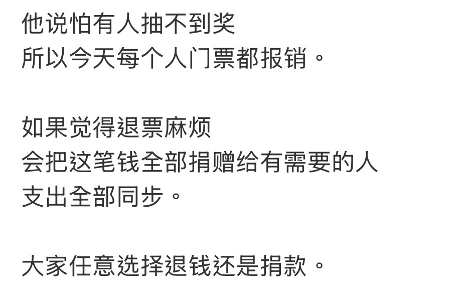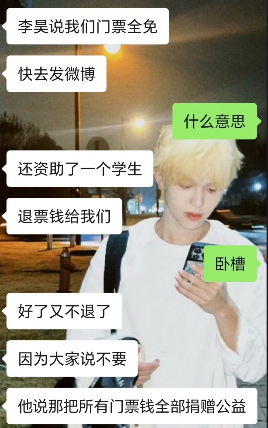 怎么会有这么好的昊昊李昊免费请粉丝看演出,可以选择退票他请,不退票的全部捐款李昊请粉丝看演出李昊免费请粉丝看演出 (图源禾桃侵删)