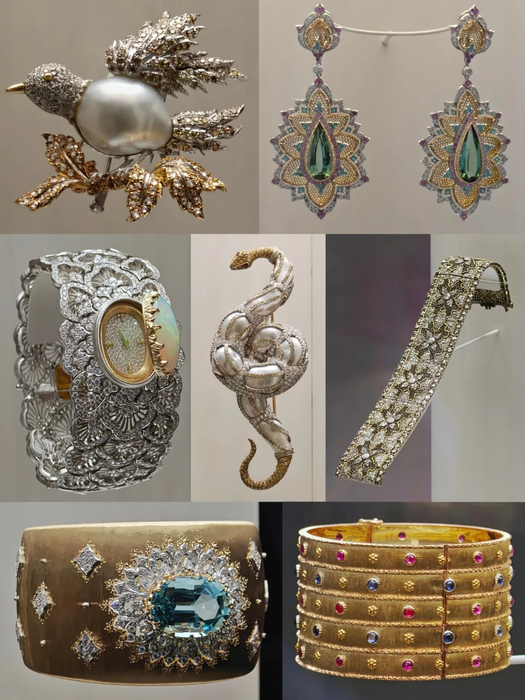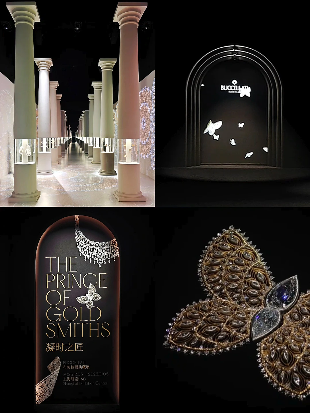 💎凝时之匠-Buccellati布契拉提典藏展 📅2026年1月5日🔚 ⏰11:00-19:00 📍南京西路1333号 上海展览中心7号门 🎫35 | 需🐟约 💎在上海,每年都有两只手数不过来的珠宝展,其实不算是特别喜欢看珠宝展的那类人,看过算过,但这一次不一样,Buccellati的展着实是惊艳到我了! 💎这个特展的规模并不大,每一个展厅也并没有什么宏大叙事,正如这个意大利老钱品牌给我的感觉,从不张扬,低调优雅,是文艺复兴艺术与极致手工的完美融合‌。珠宝本身之外,光影设计与展品的结合堪称wan美,布展上大分! 💎进入第一篇章「世代传承 」,4只🦋(胸针)的“蜕变”和珍贵设计手稿串起了品牌四代传承与革新的脉络;第二篇章「工艺臻境」中,珠宝晚宴手袋和化妆包、古董珠宝盒和化妆盒灵感源自古罗马文物的Bosco reale系列杯作依次呈现;第三篇章「自然秘境」是我蕞喜欢的,这里展示的是自然主题的银制餐具和餐桌摆件,一边是🐿️动植物,另一边是🦞海鲜,栩栩如生,充满生活趣味,拱廊部分还悬挂着各种叶子造型器物。 💎走过「匠艺之界」的“工艺万花筒”沉浸式走廊,就是珠宝集中呈现的「典藏长廊」了,12个白色立柱形的展柜让人宛如踏入一座罗马神殿。品牌标志性工艺打造的作品、经典系列作品和高级珠宝臻作尽数展现,包括里程碑式的ETERNELLE系列戒指、以自然为灵感的Il Giardino di Buccellati系列‌、转化文艺复兴意大利建筑元素的Opera高级珠宝系列等等。它家独特的‌手工雕刻工艺(Rigato、Segrinato、Telato、Ornato、Modellato五大技法)、蕾丝镂空工艺、蜂巢工艺、连环成链工艺,让黄金呈现出织物般的柔软质感,细腻又充满层次,贵族气质扑面而来。Ps,梅艳芳也是Buccellati的忠实粉丝,这次展出的FORA系列的项链和耳环就是她的私人藏品。 💎展览尾声的展板很详尽地介绍了工艺与品牌历史大事记,字有点密,需要静下心来看(不过挂得略高,有点欺负矮个子了) 💎本JO厨逛展还多了个乐趣,谁懂[偷笑R] 💗关注我,每天带你免费看展💗