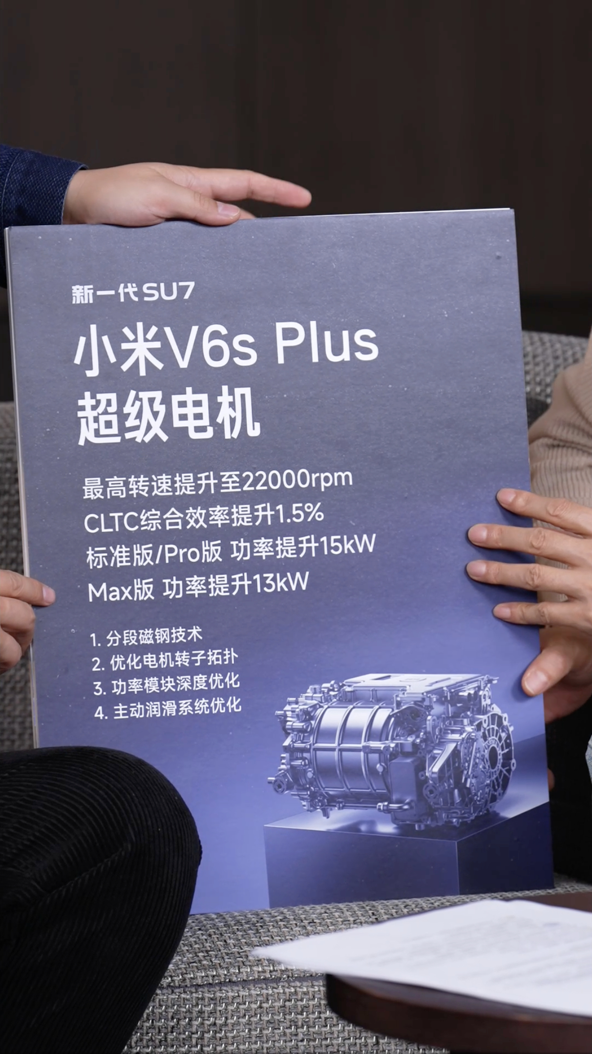 新一代小米 SU7 全系长续航,Pro 版拥有 902km CLTC 续航里程。整体升级包括碳化硅高压平台、大电池、小米 V6s Plus 超级电机、热管理升级等等,V6s Plus 超级电机最高转速提升至22000rpm、CLTC综合效率提升1.5%、标准版/Pro版 功率提升15kW、Max版 功率提升13kW。小米 V6s Plus 搭载四项优化技术,包括分段磁钢技术、优化电机转子拓扑、功率模块深度优化、主动润滑系统优化。
