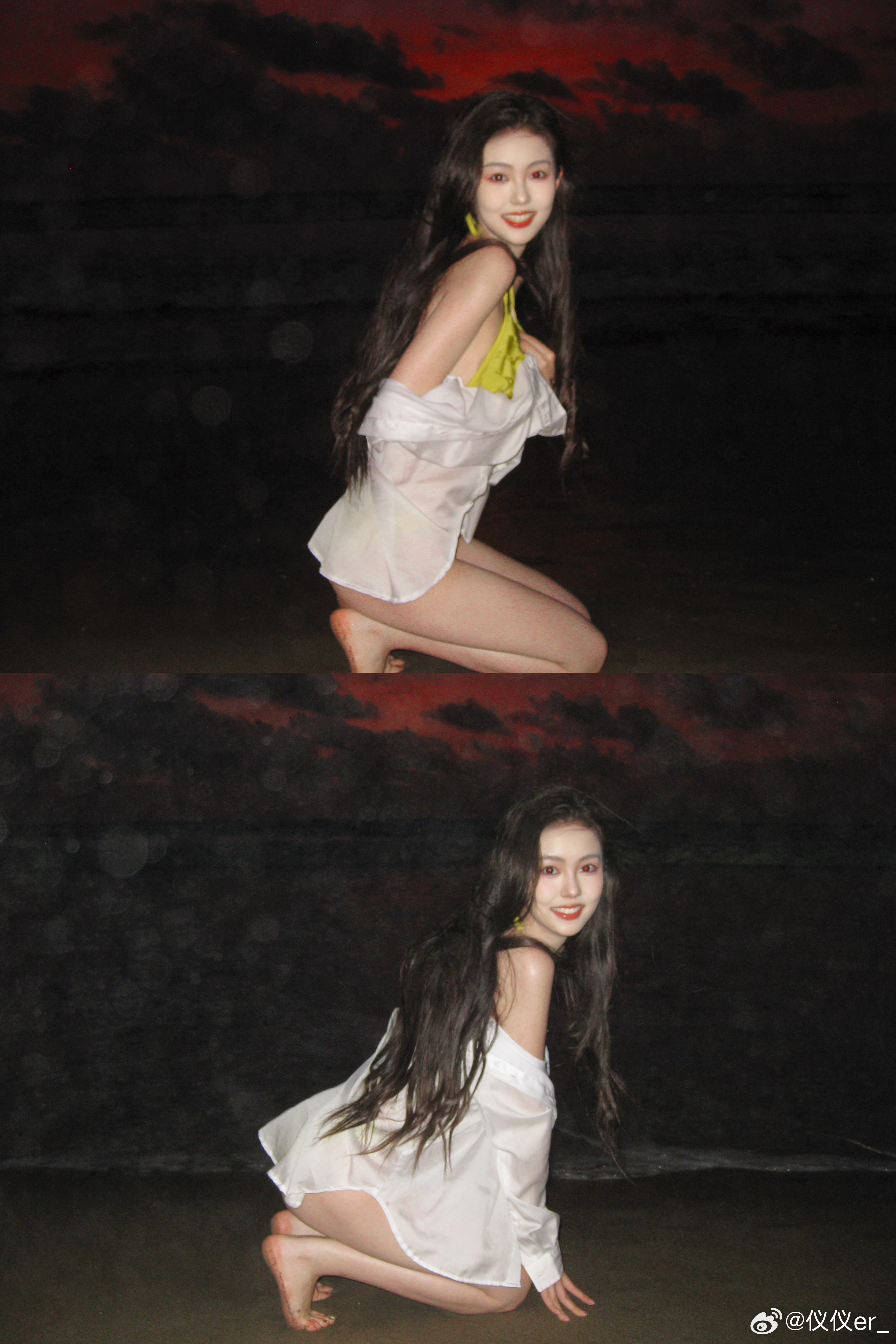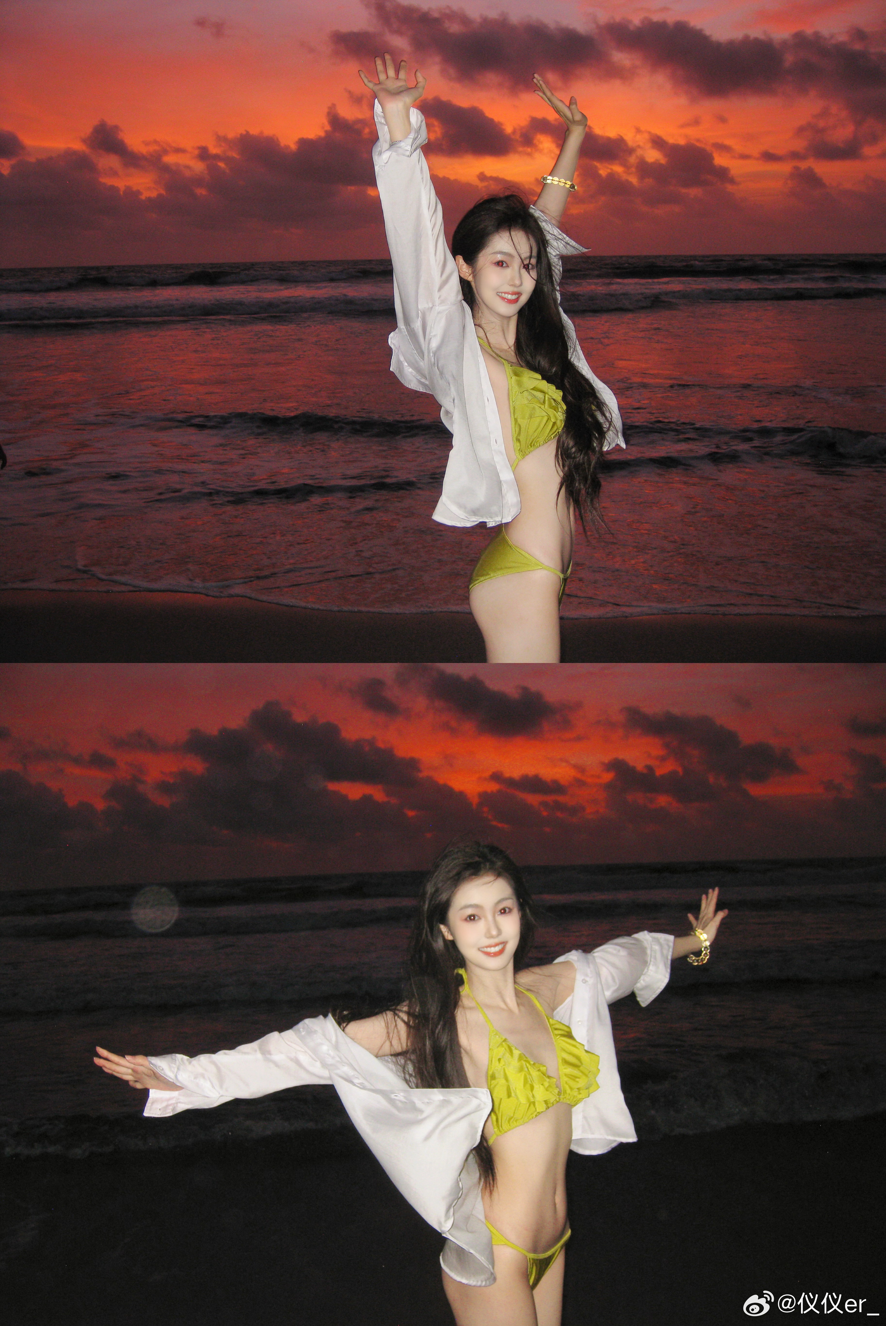 何超莲小绿裙光脚丫,穿上春天的颜色好迷人。何超莲