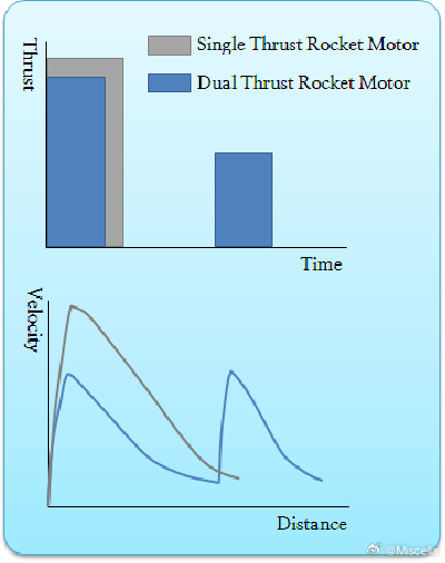 空空导弹固体火箭发动机内孔燃面截图空空导弹基本上不会采用小推力、长燃时的端燃发动机,现役空空导弹以及空地导弹清一色采用短燃时、大推力的内孔燃烧固体火箭发动机。大多数近程空空导弹选择单室单推发动机,中程和远程空空导弹选择单室双推发动机,部分新型中远程空空导弹选择双室双脉冲发动机。近程空空导弹要求初始高推力,一般都是星形开孔,燃烧时间2到5秒,平均推力达20千牛左右。中程空空弹一般是单室双推,加速段多采用星形开孔,以及少部分复杂几何燃面,平均推力15千牛左右,保证导弹在短时间内加速到M3到M5。巡航段一般是开孔圆柱,并添加草酸盐等减速剂,工作时间6到15秒,使导弹在一个不太高的速度下飞行,避免速度太高浪费发动机能量。近年来部分能量换高度、再用高度换能量的空空导弹、地空采用总冲最大化的单室单推、圆柱装填设计,用长度比例很大的初始内燃面降低初始推力不足的影响,并且不添加减速剂,保证固体燃料高比冲。此类发动机装填强度也较高,燃面不存在薄壁设计,燃烧形态简单,可以采用一些物理性状没那么突出、但比冲很高的特殊燃料。双脉冲发动机内燃面设计要考虑初始加速性,第一段火箭一般要有星形开孔的加速段,以及开孔圆柱巡航段。第二段火箭根据点火策略可设计成纯助推或纯巡航,前者适合推迟点火,后者适合提前点火,或者也采用均衡的单室双推。最好是第二段采用可选择点火时机的黏胶发动机,弹道设计更为灵活。不过总体上双脉冲发动机在同一尺寸下总冲要比单室发动机小一些。 目前美国海军AIM-7E2的弹道性能是解密的,一般的203毫米双脉冲导弹比例导引弹道可以简化为7E2射程四分之三处再接一个完整的射程。当然这是很简化的方法,因为双脉冲弹也会采用高升阻比弹道。