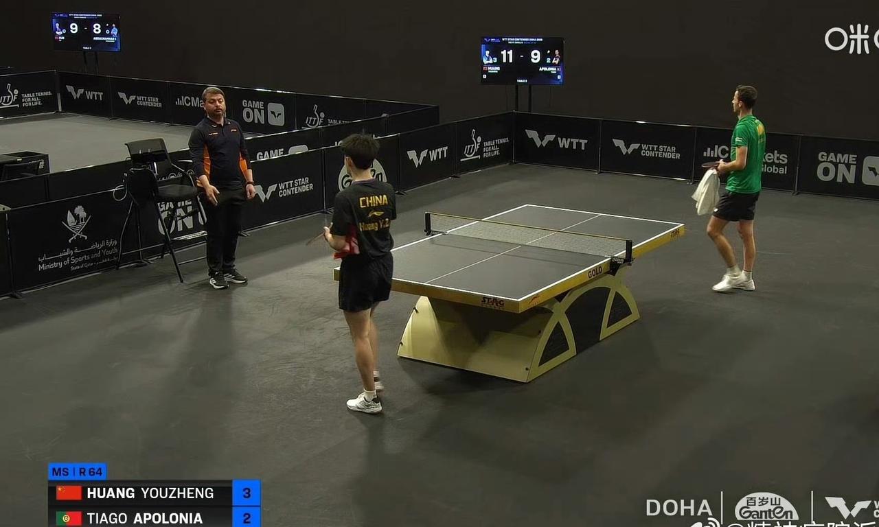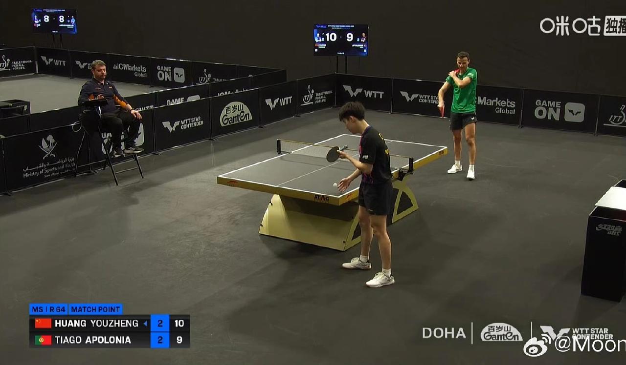 好险好险[捂脸]! 谁懂啊?终于是3-2,不是2-3,还是让二追三,决胜局0-3开场的,黄友政🇨🇳3-2让二追三获胜晋级了[赞][捂脸]! 今日凌晨,在一场2026WTT球星挑战赛多哈站男单1/32决赛中,黄友政🇨🇳3-2击败葡萄牙老将阿波罗尼亚🇵🇹,惊险晋级男单32强,五局比分为:6-11,7-11,11-8,11-5,11-9 。 对手是葡萄牙名将,也是一名老将,以前奥运周期的对手之一,实力深厚。 最终黄友政获胜,感觉是政哥战术更坚定了,对手手感也没前两局那么好了。 政哥一定要记住这个舍我其谁的感觉,咱明明有能力,要自信起来呢 下一轮:黄友政🇨🇳VS户上隼辅🇯🇵,政哥加油[奋斗]!