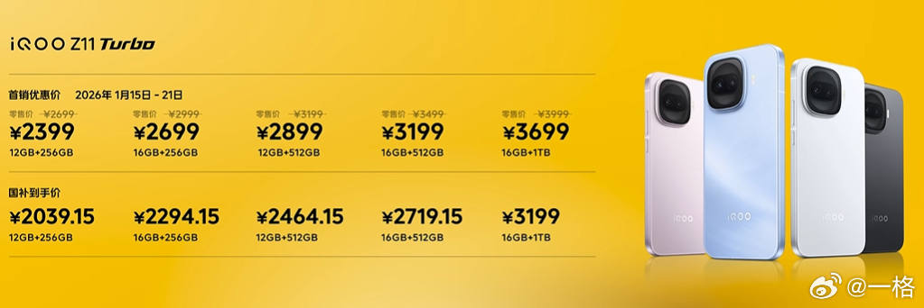 iQOO Z11 Turbo 已全渠道开售,售价2699元起,首销叠加国补的话能做到2039.15元起~