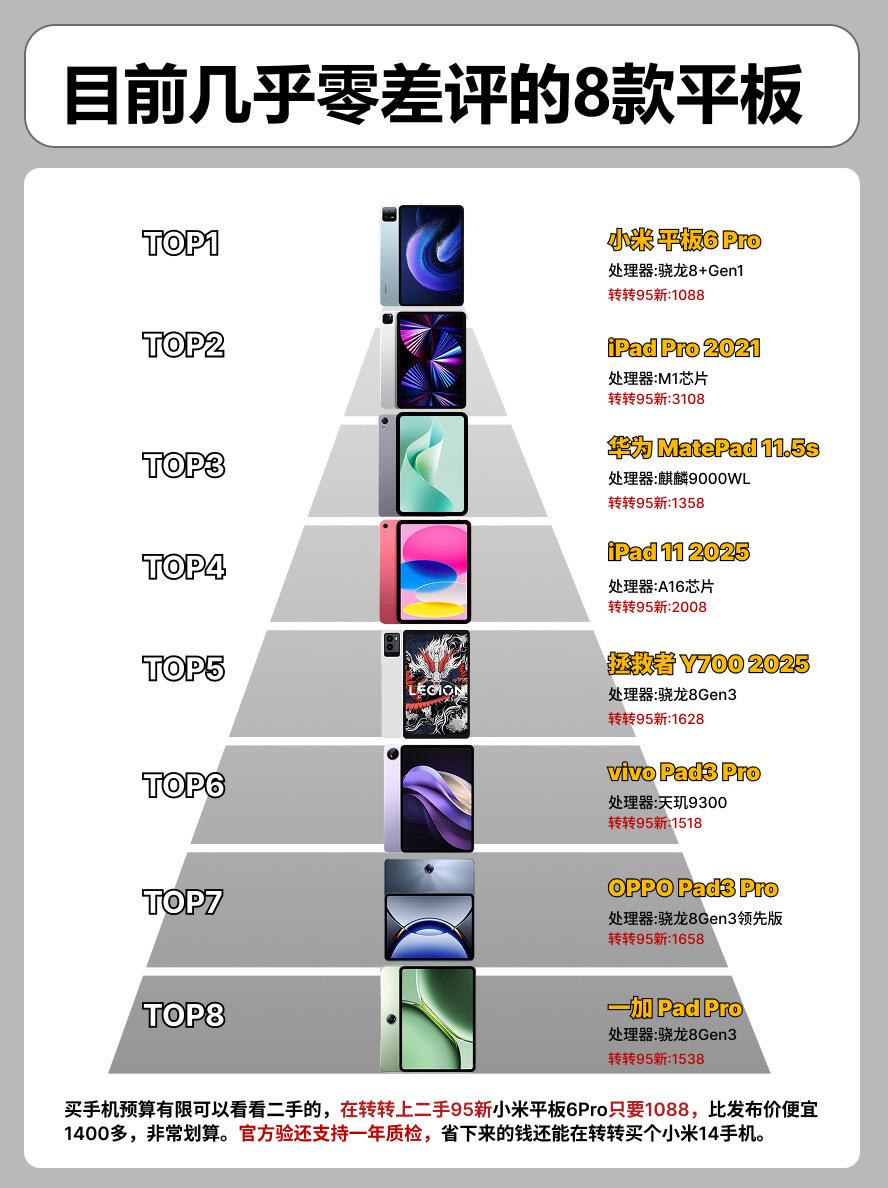 目前几乎零差评的8款平板。 平板平板推荐拯救者y700三代vivop...