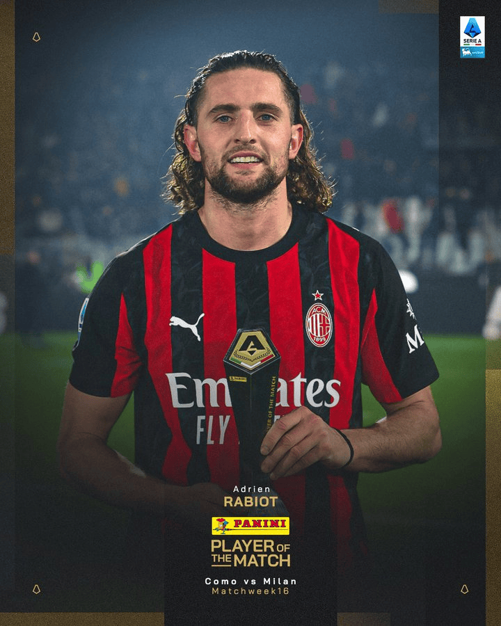 本赛季各项赛事中,拉比奥共代表米兰出战16场,贡献了3粒进球、3次助攻。