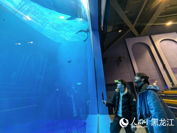 随后,考察团一行来到哈尔滨极地公园,一场精彩的极地动物表演正在上演。聪明的海豚跃起,在空中划出优美的弧线,憨态可掬的企鹅摇摆着身子走上舞台,引得现场掌声雷动。在哈尔滨极地公园白鲸剧场内,欧洲友人们与白鲸亲密互动,记录下人与海洋精灵和谐共处的温暖瞬间。