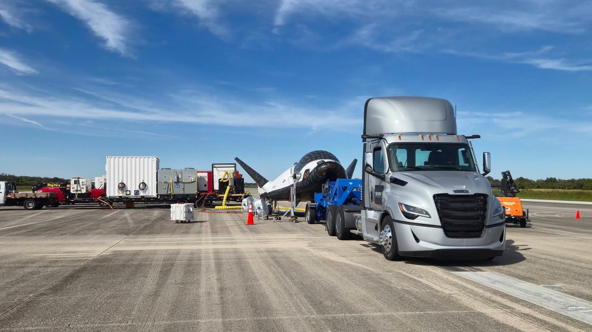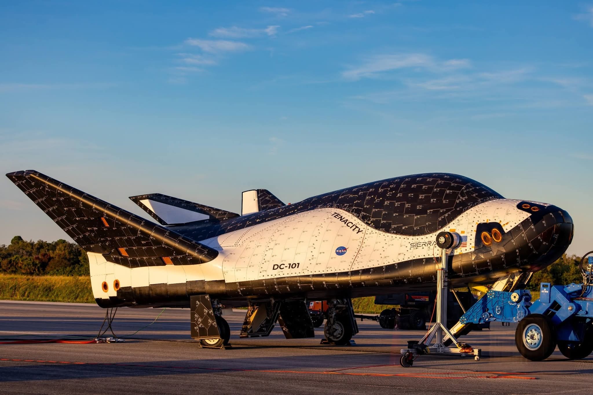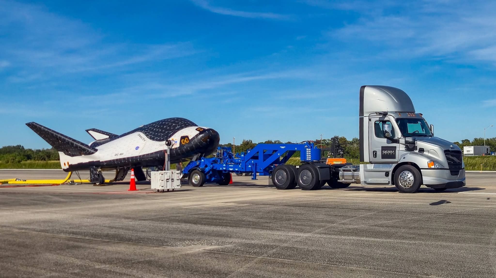 2025年11月,美国塞拉空间(Sierra Space)公司的首架“追梦者”可重复使用航天飞机“坚韧”号(DC-101)在肯尼迪航天中心的航天飞机跑道进行跑道测试。其原计划2024年发射,不过经历数次计划变更,目前最早将于 2026 年下半年,搭乘 ULA 的“火神”(Vulcan)运载火箭进行首飞。每天认识一件兵器烽火问鼎计划 图片中安装在前起落架上的装置,使飞行器可以在地面上滚动并被牵引。测试过程中使用了 两辆半挂卡车(拖头) 来完成跑行测试以及其他在获得部分飞行许可之前必须通过认证的机动操作。这艘飞船直接继承了航天飞机的技术基因,例如其非常相似的热防护系统(TPS)隔热瓦。这种航天器最独特的运输与运行特性在于:垂直发射、跑道着陆——与航天飞机完全一致。