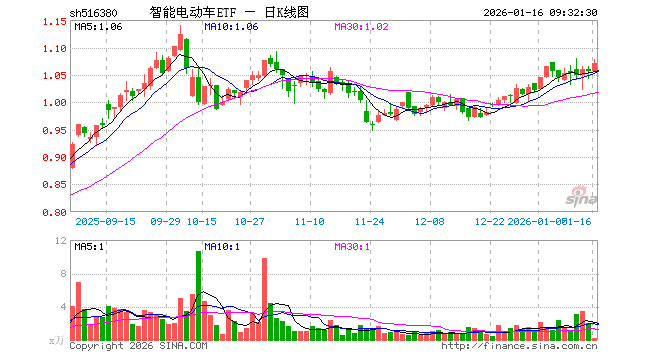 1月16日,智能电动车ETF(516380)开盘涨0.00%,报1.056元。智能电动车ETF(516380)重仓股方面,宁德时代开盘涨1.20%,比亚迪涨1.08%,立讯精密涨1.59%,汇川技术涨0.41%,三花智控涨0.93%,亿纬锂能涨0.53%,豪威集团涨0.82%,长城汽车涨0.23%,拓普集团涨0.54%,科大讯飞跌2.92%。