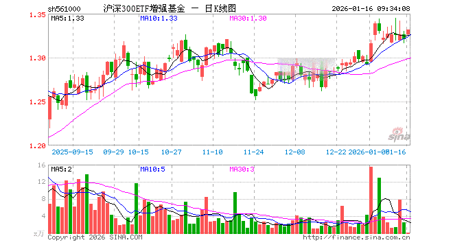 1月16日,沪深300ETF增强基金(561000)开盘涨0.38%,报1.326元。沪深300ETF增强基金(561000)重仓股方面,宁德时代开盘涨1.20%,贵州茅台涨0.44%,中国平安涨0.28%,立讯精密涨1.59%,紫金矿业涨0.18%,海光信息涨1.08%,中芯国际涨2.46%,东方财富涨0.96%,美的集团涨0.04%,长江电力涨0.22%。