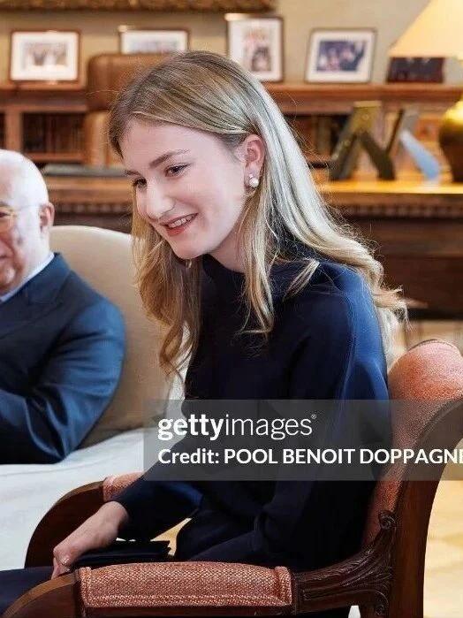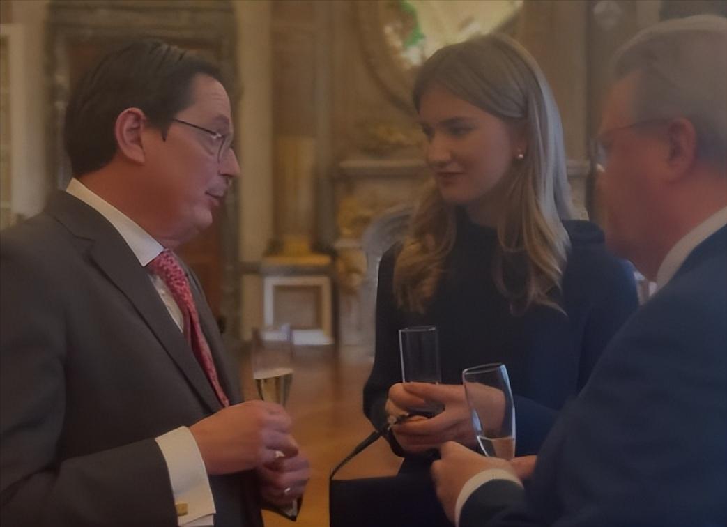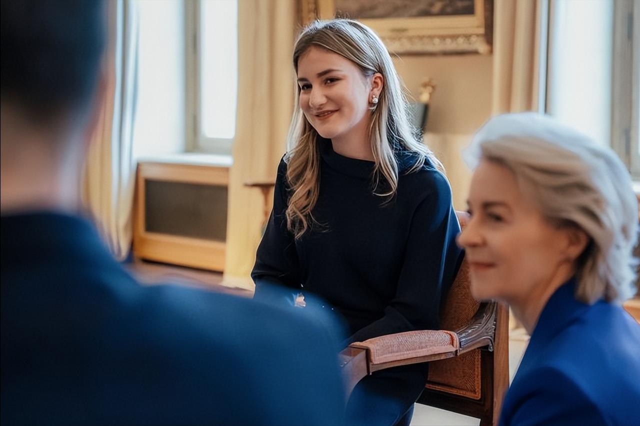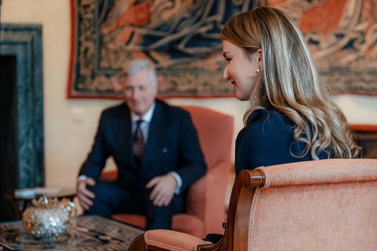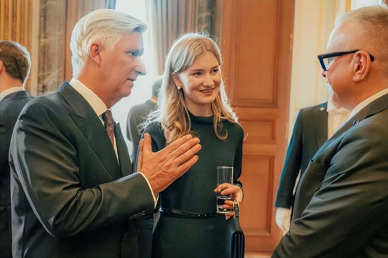 比利时王室新年招待会[笑] 玛蒂尔德王后穿了一条宝蓝色新裙子, 修饰她高大的身材,衬得她肤色更白, 女儿伊丽莎白则凭借自己的青春美貌, 反而选择藏蓝色保守衣裙现身[偷笑]