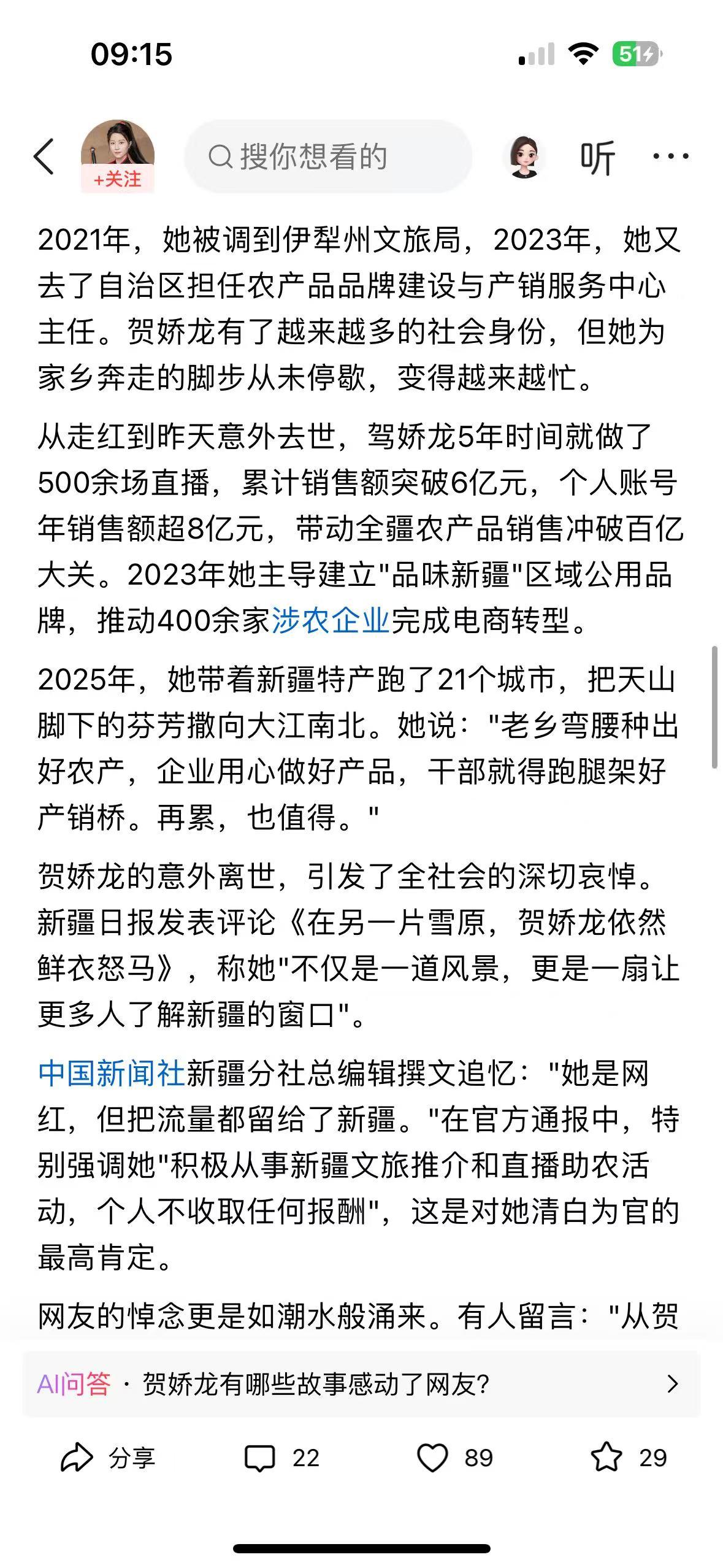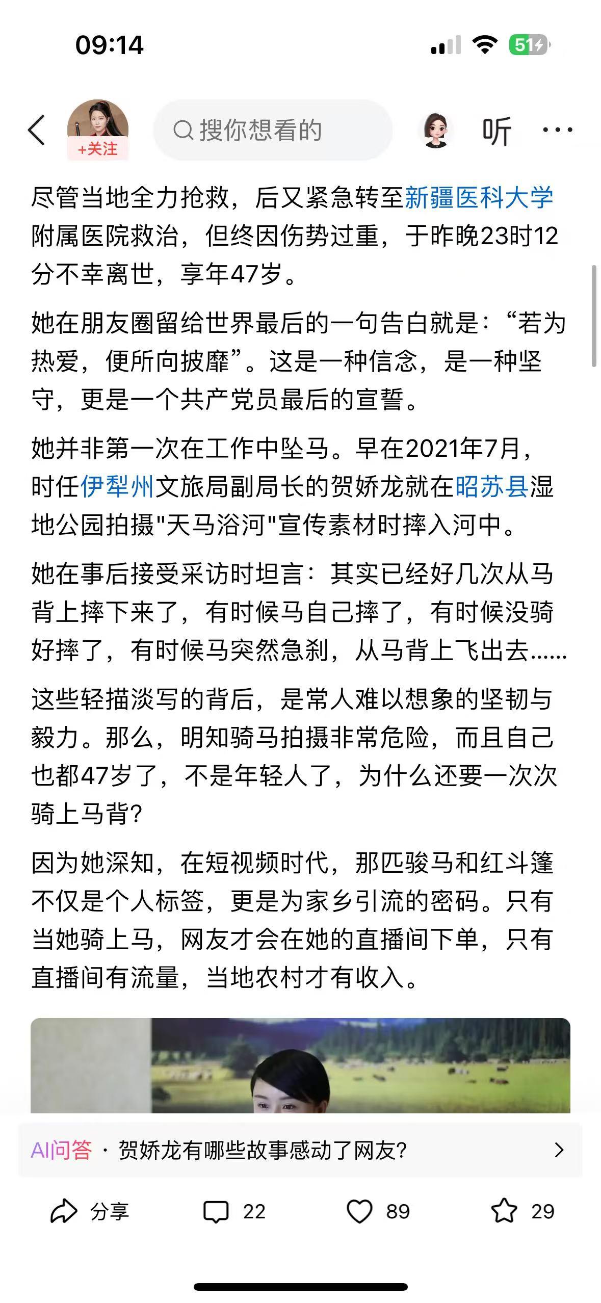 “马背上的女县长”贺娇龙,于1月11日拍摄助农素材时意外坠马,经全力抢救无效,不
